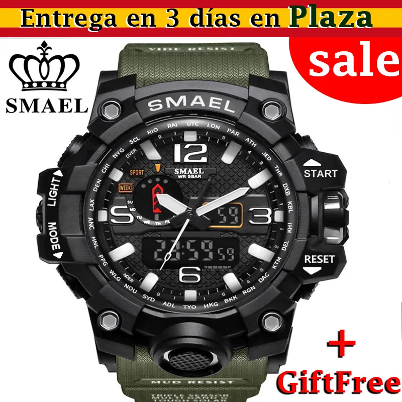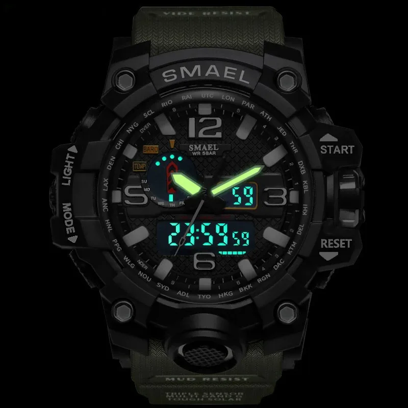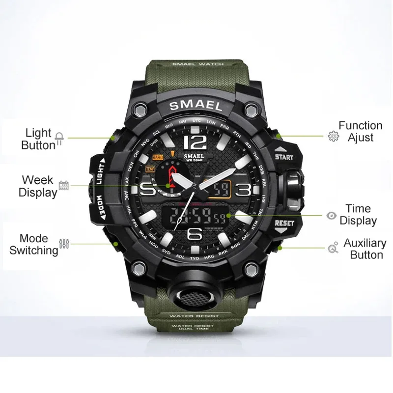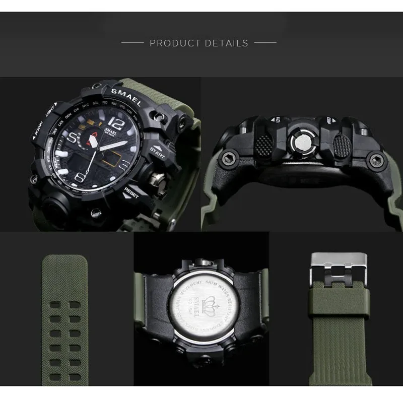 2021 новый бренд SMAEL Для мужчин спортивные часы с двойным Дисплей с аналоговым и цифровым дисплеем светодиодный Кварцевые наручные часы Водонепроницаемый плавательный часы в стиле милитари
