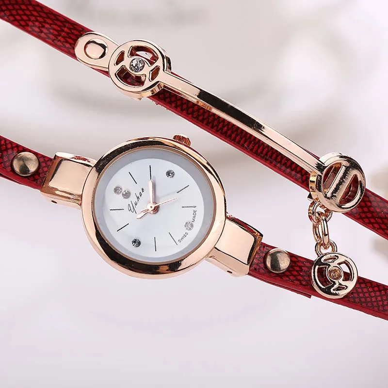 Часы наручные с кварцевым механизмом и аккумулятором, многослойные тонкие декоративные ремешки из искусственной кожи для женщин, точные