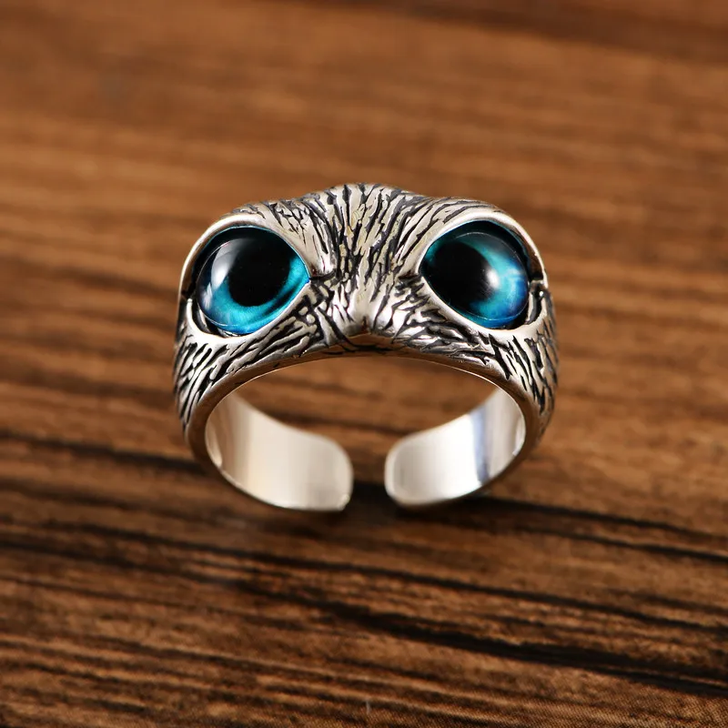 Винтажное кольцо в виде совы с голубыми глазами для мужчин и женщин