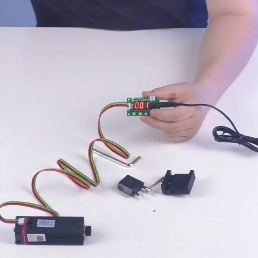 Входная мощность: 10 ВтМатериал радиатора: авиационный алюминий + латунный корпусЛазерный диод: sharp 350 мВт 5,6 лазерный диод (максимальная мощность 405nm 5,6 мм лазерный диод)(Реальный 500 МВт непрерывной работы, другой продавец 500 МВт Nichia 3,8 мм лазер с мощностью всего 200 МВт)LD ток: 350 мАСветящийся цвет: синийРазмер сечения: 30 мм x 30 ммРежим охлаждения: медный сердечник 20 мм + паз радиатора + термосиликоновая смазка + охлаждающий вентилятор 10000 об/минРазмер: 60*30*30 ммВыходное напряжение адаптера: 12 В 2 а постоянного токаГравировка: МДФ/балса/бумага/дерево/ткань/пластик/кожа/Фанера/пенная бумага/анодированный алюминийНе выгравировать: металл/стекло/камень/керамика/PCB/нержавеющая сталь/светоотражающий материал/прозрачный материалТехнические параметры:Вход модуля: 10 ВтВыходная мощность лазера: 500 мВтДлина волны: 405нмФорма луча: точка (фокусируемая)Рабочее напряжение: 12 В постоянного токаМодуляция TTL и PWM: Да, Совместимость с модуляцией TTL и PWMВходное напряжение: DC12VPWM/TTL Вход: DC3.3V-12VВходной интерфейс: PH2.0-4Pin (+,-, ШИМ/TTL, температура), 3Pin (+,-, ШИМ/TTL) , 2Pin + 2Pin (+,-) + (ШИМ/TTL,-)Примечание: Температурный интерфейс может быть отключен, NEJE предоставляет текстовые инструкции по приобретению температуры на wiki.Режим привода: внешний ACCБезопасный диапазон температур: <70 ℃Вес модуля: 115 г (чем легче вес, тем меньше инерция движения, тем лучше производительность)Срок службы: 20000 часов