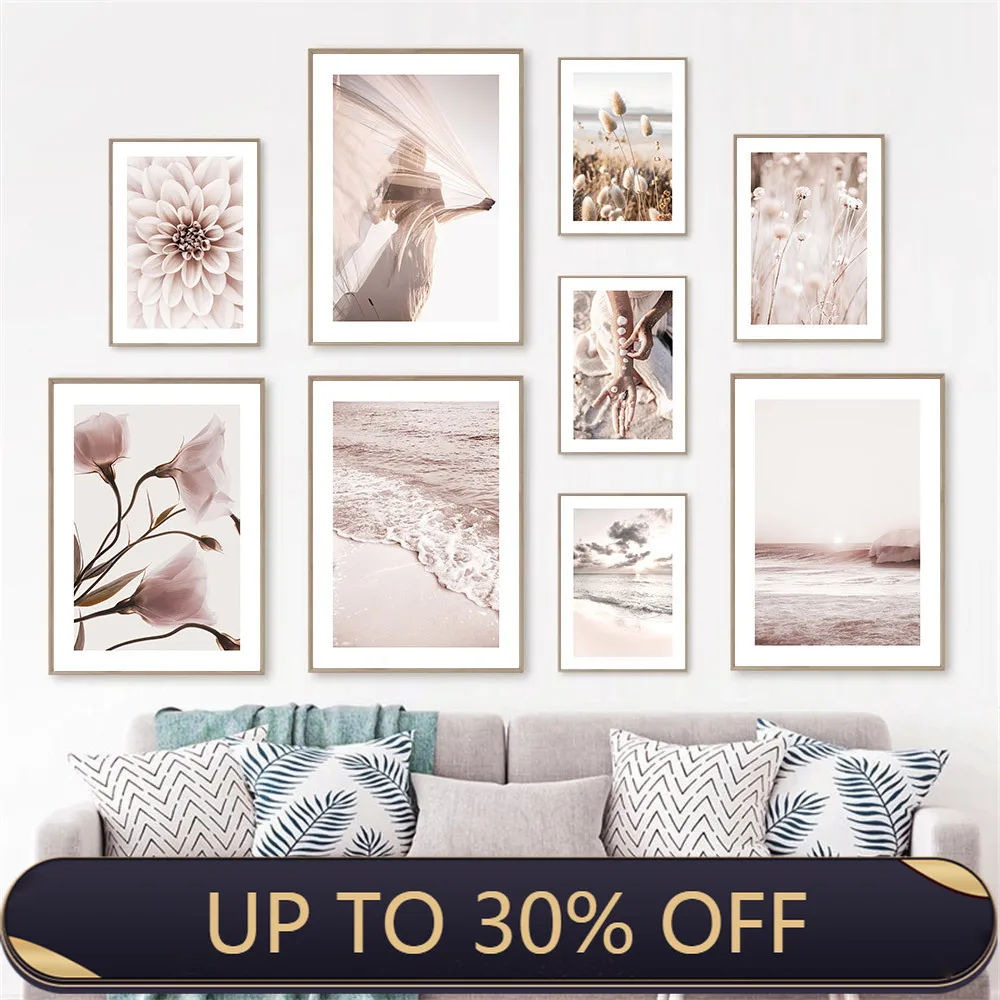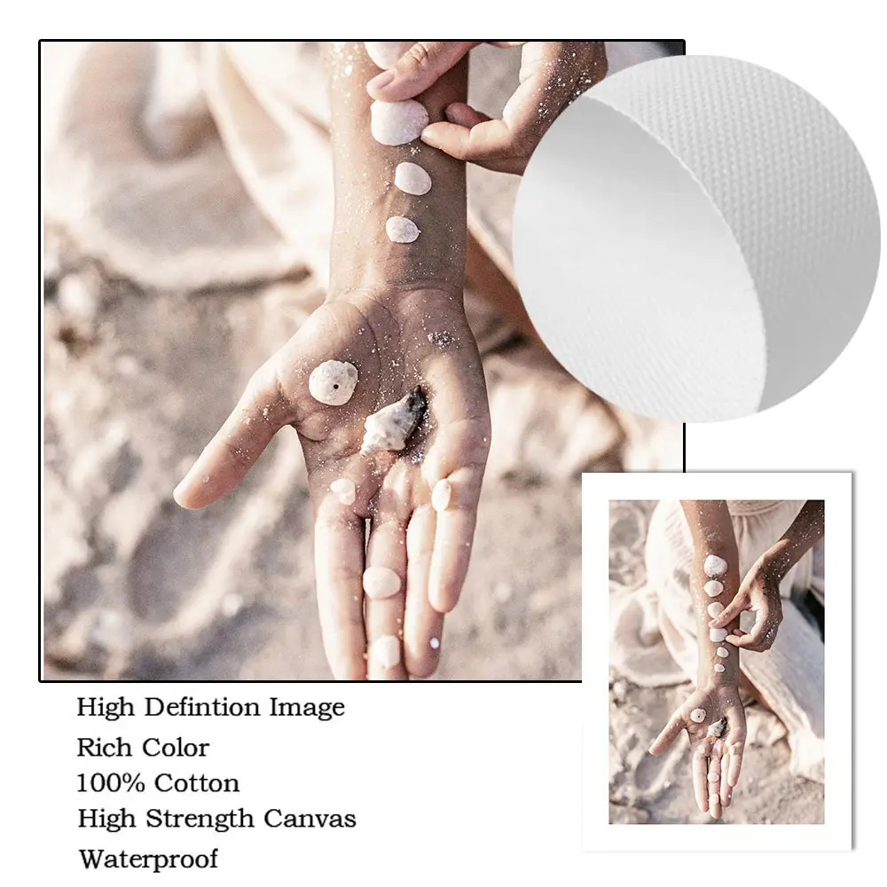 Спокойный Пляжный Пейзаж Wall Art плакат Рид песка рук в виде ракушки Печать на холсте, цветочные мотивы картина Nordic настенные картины Декор в гостиную
