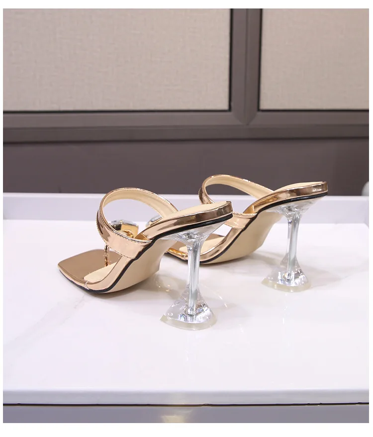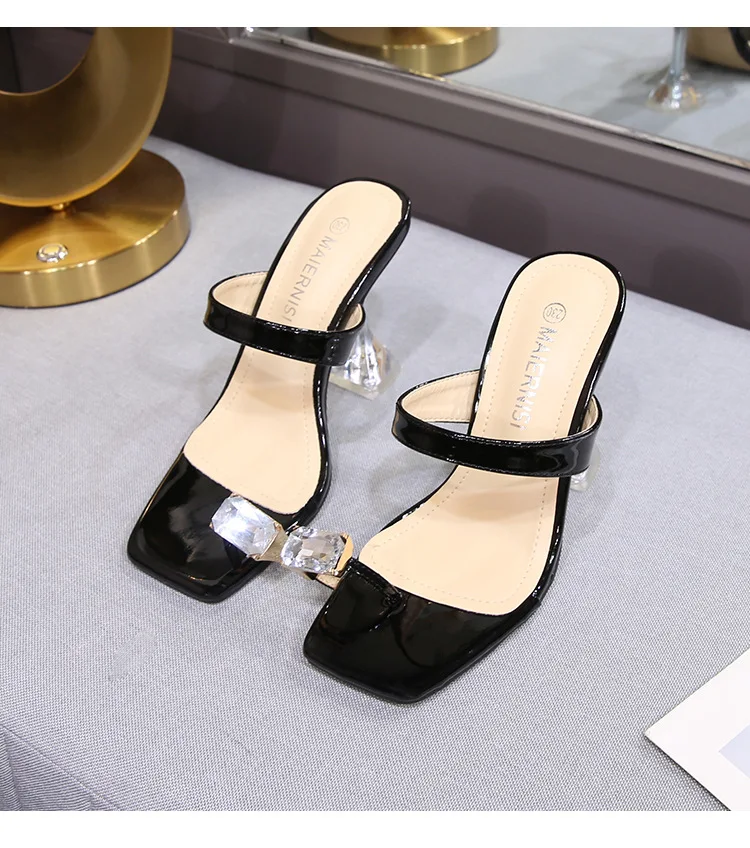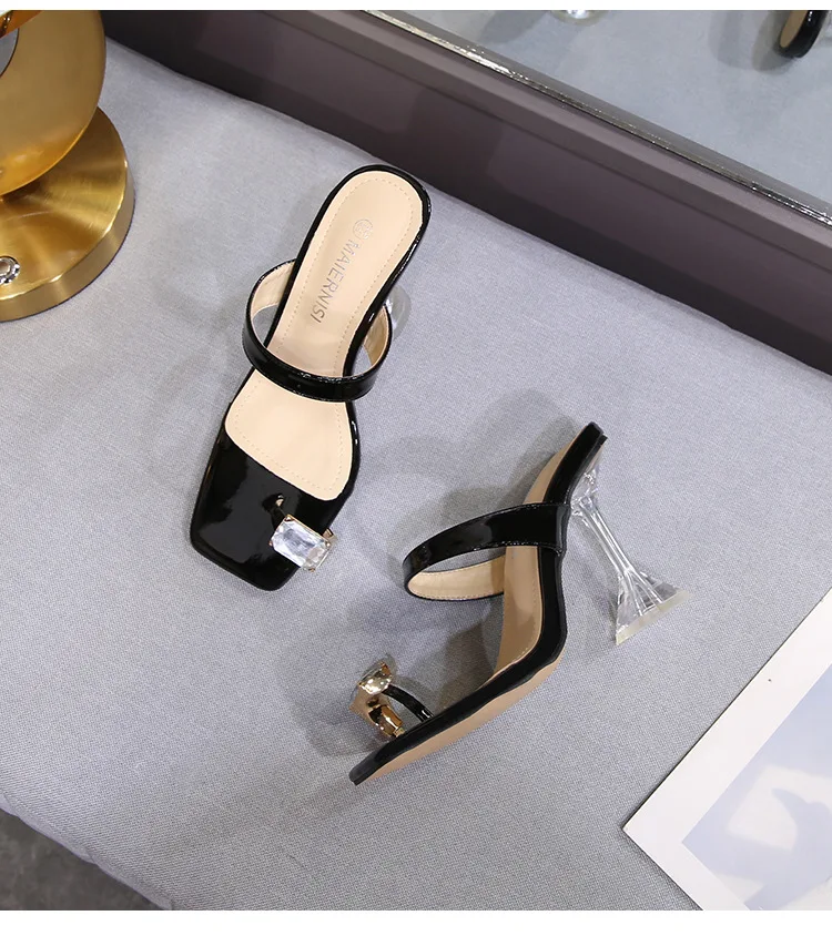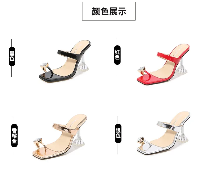 Большие размеры 3545 Вьетнамки, украшенные камнями; Женские сандалии-шлепанцы Летняя обувь женская обувь из прозрачного стекла на высоком каблуке; Шлепанцы без задника с открытыми пальцами 2021