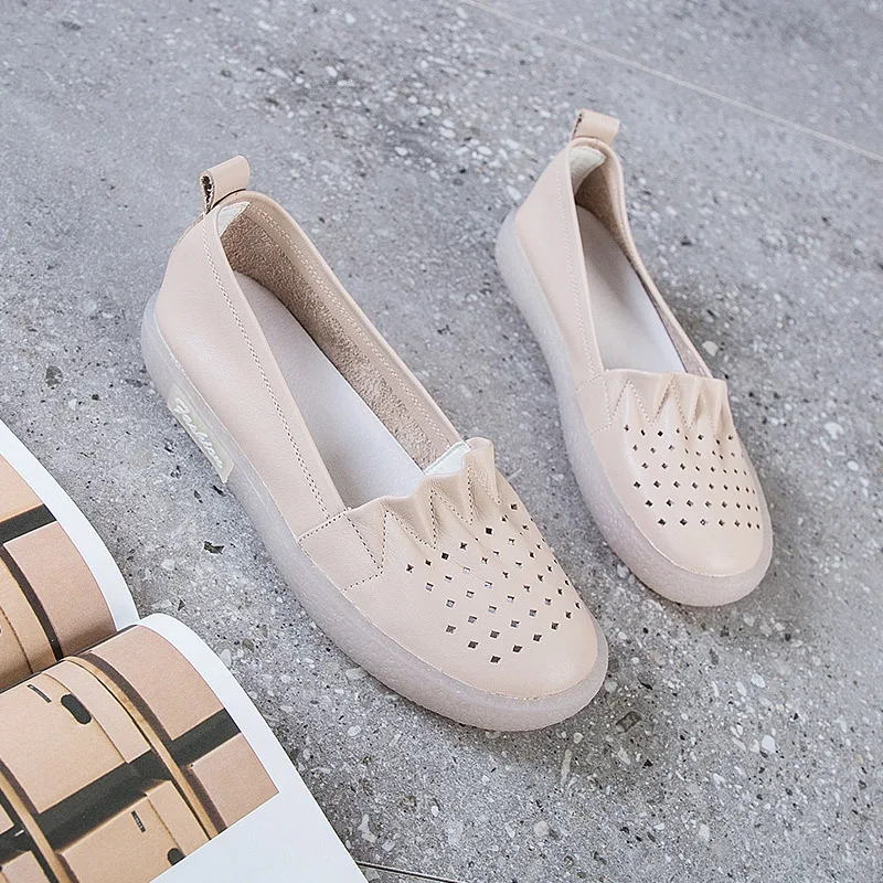 Женские кожаные балетки Tilocow, с вырезами, на мягкой подошве, повседневные, однотонные, для лета