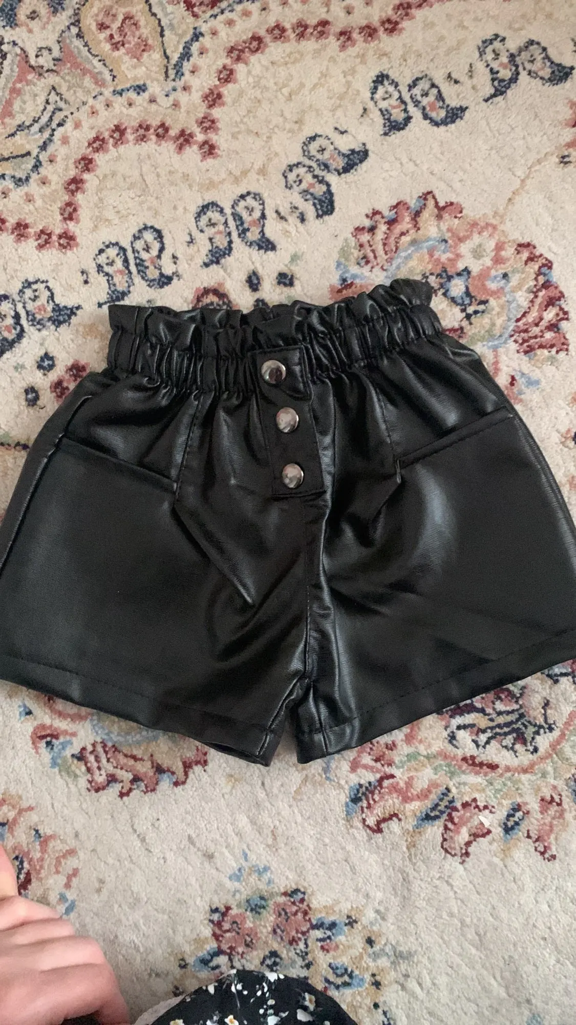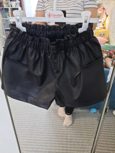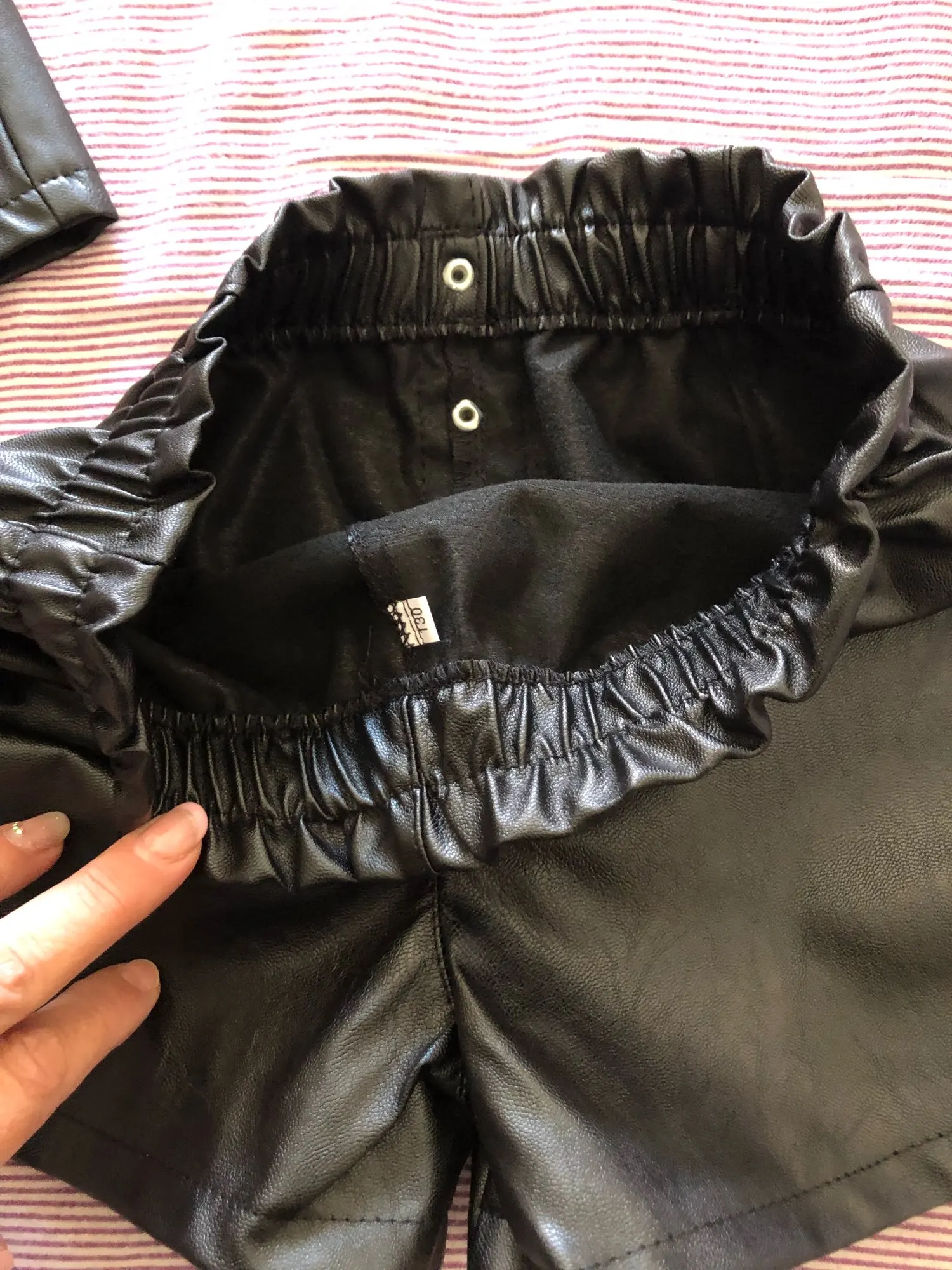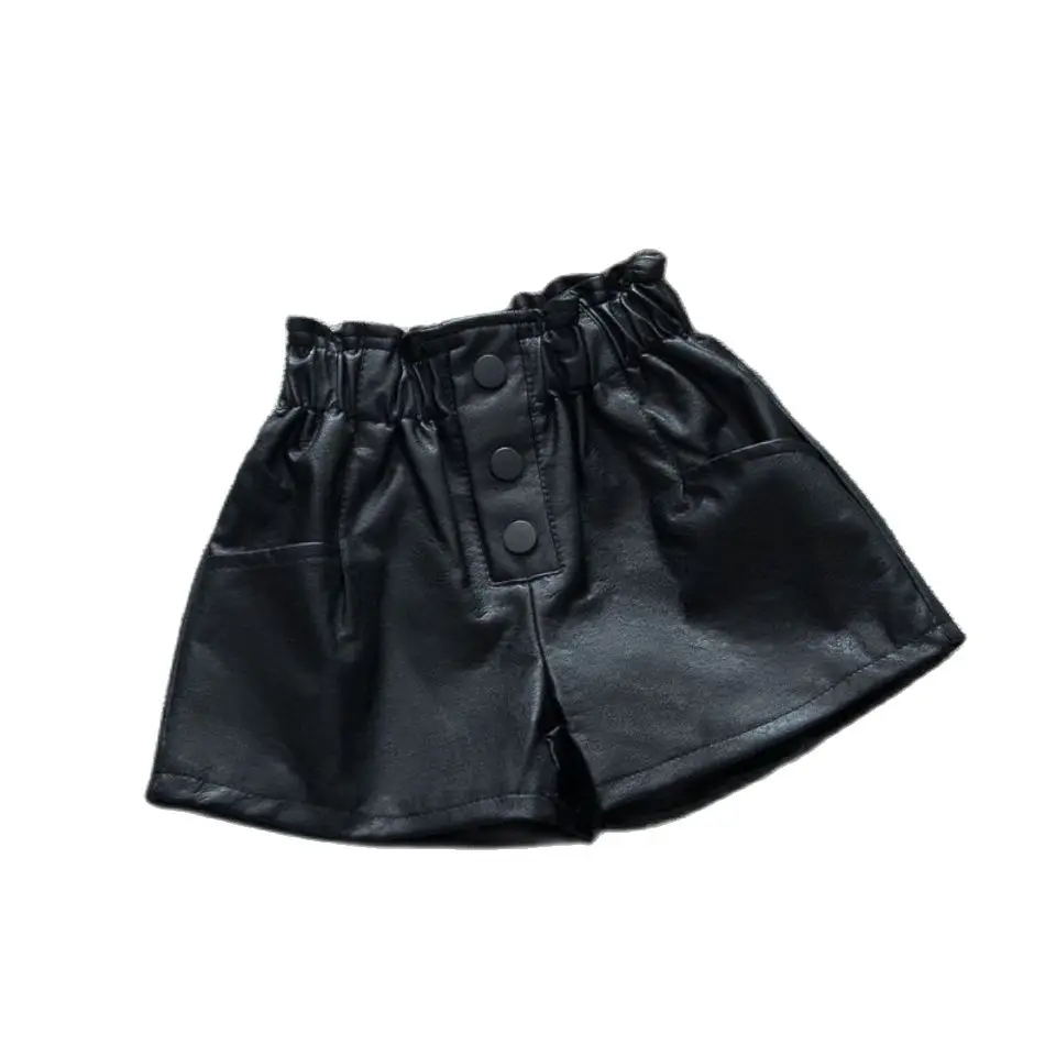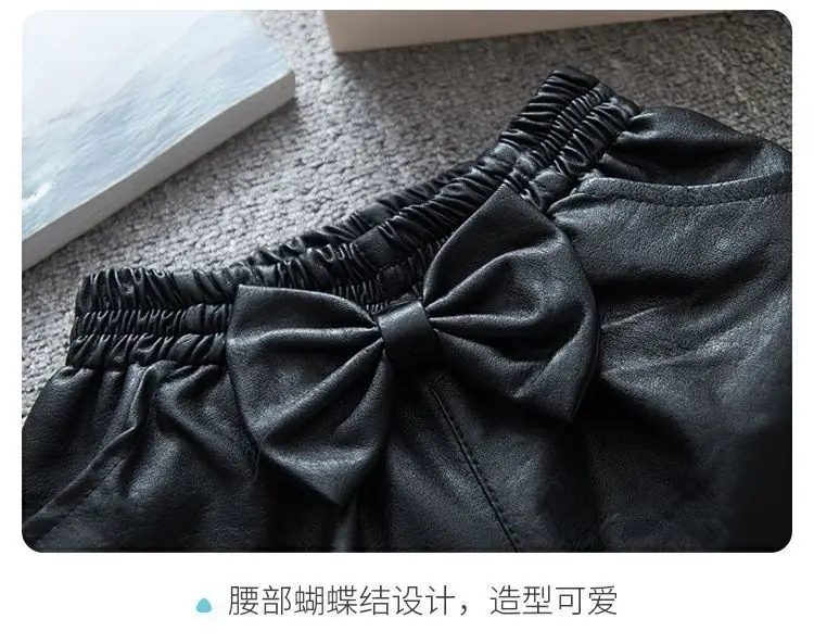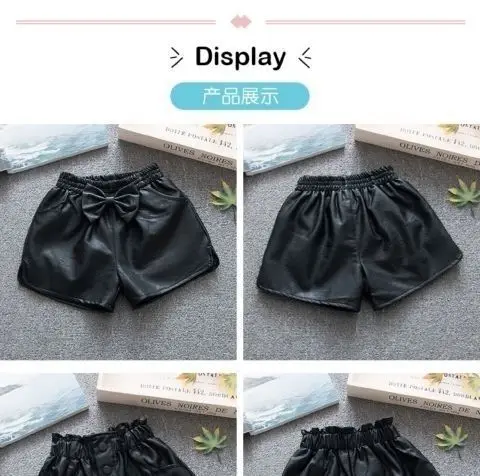 Черные шорты с бантом, новые кожаные брюки, для девочек, для малышей, весна 2021 P4439