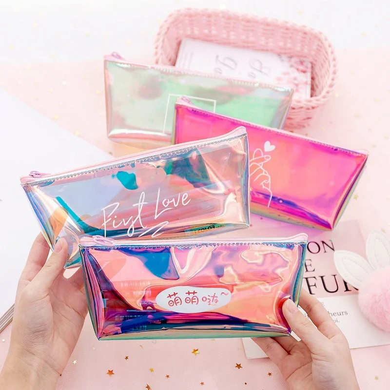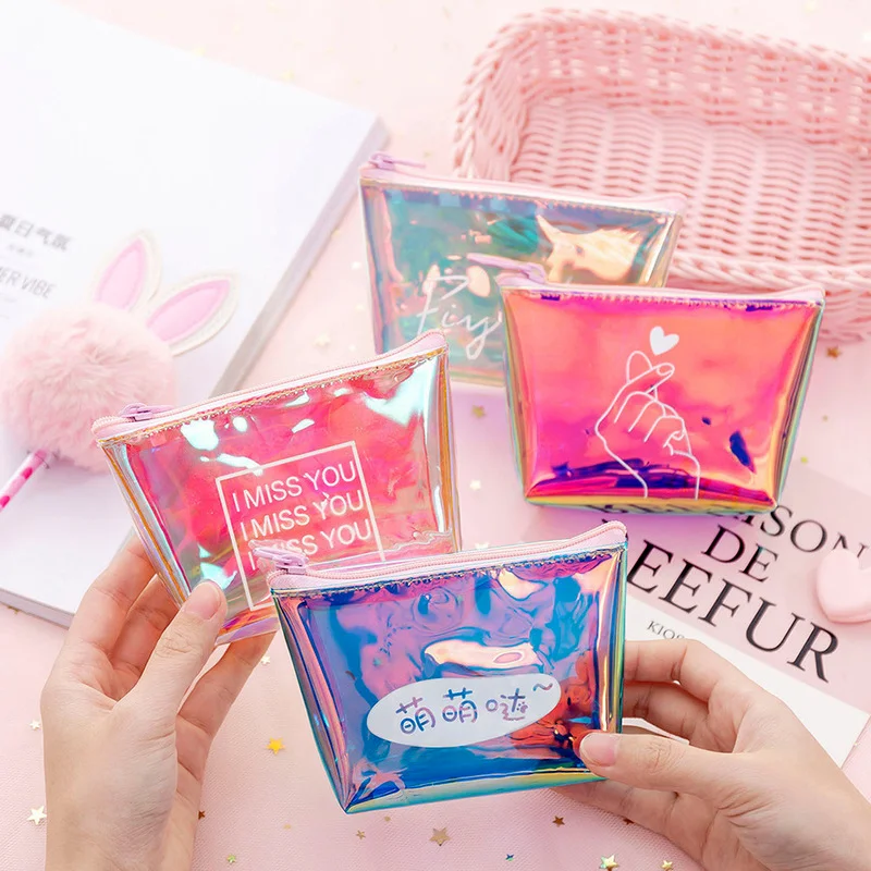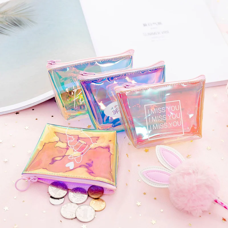 Лазерный красочный дневной пенал, прозрачный чехол, держатель для кредитных карт, органайзер для губной помады, мини-кошелек для наушников и монет