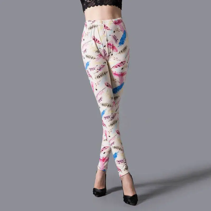 Леггинсы женские из полиэстера с высокой талией, с принтом