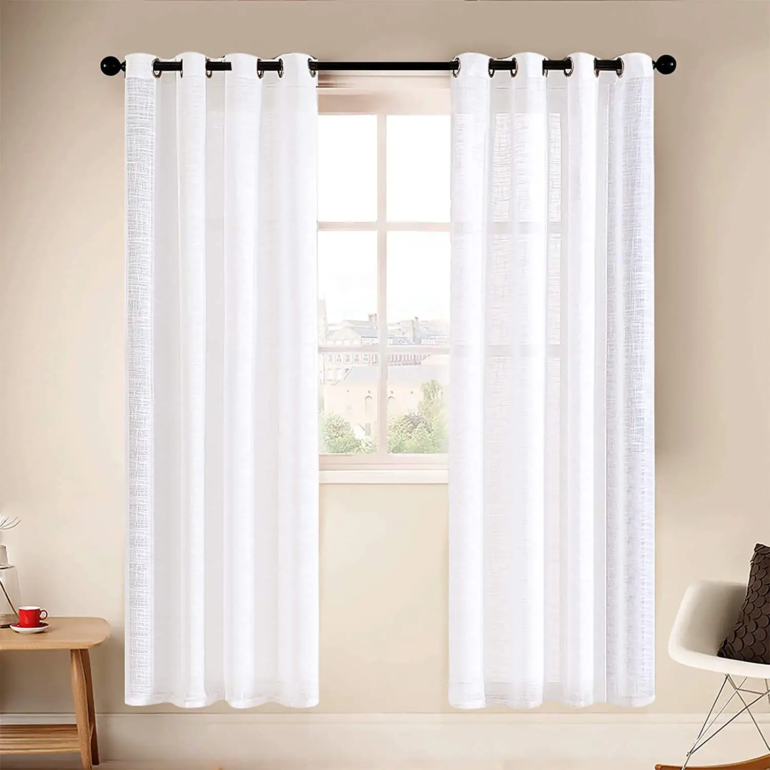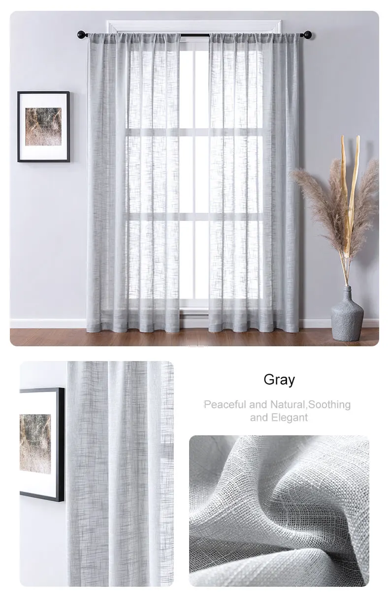 Льняные текстурированные прозрачные шторы LISM, оконные шторы в пол...