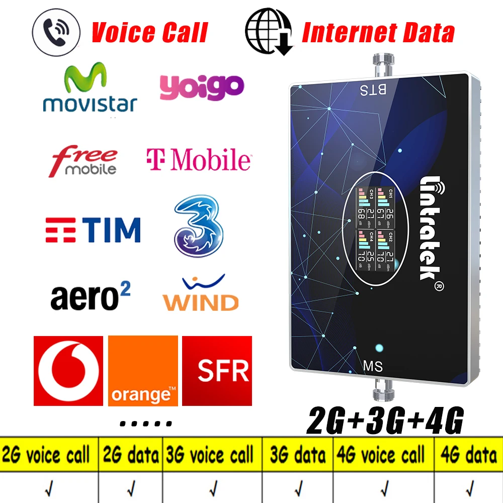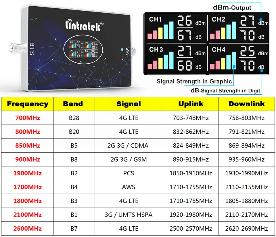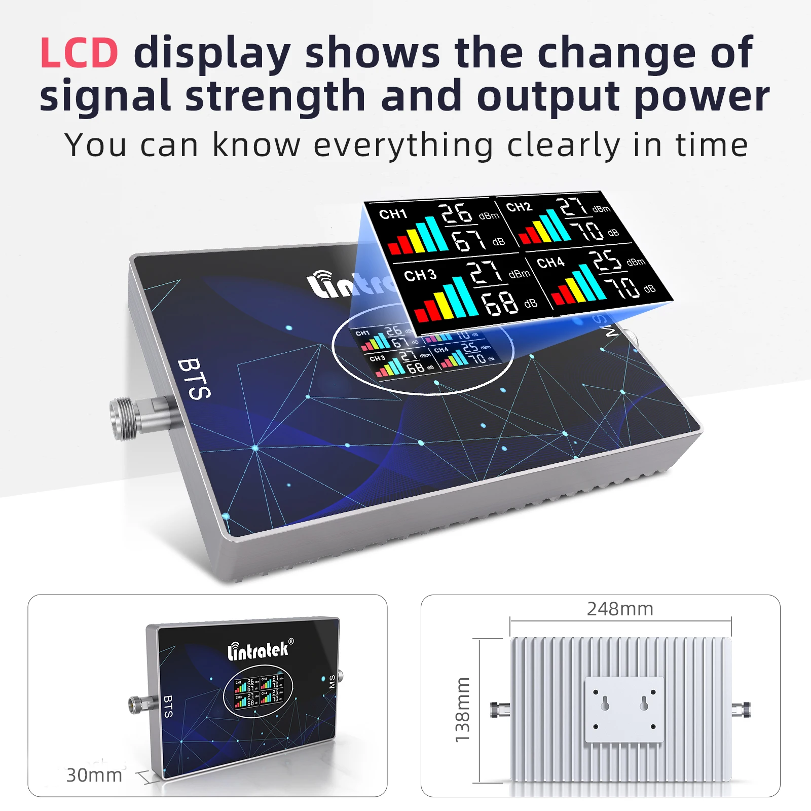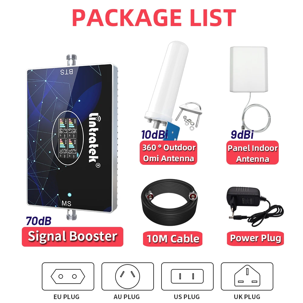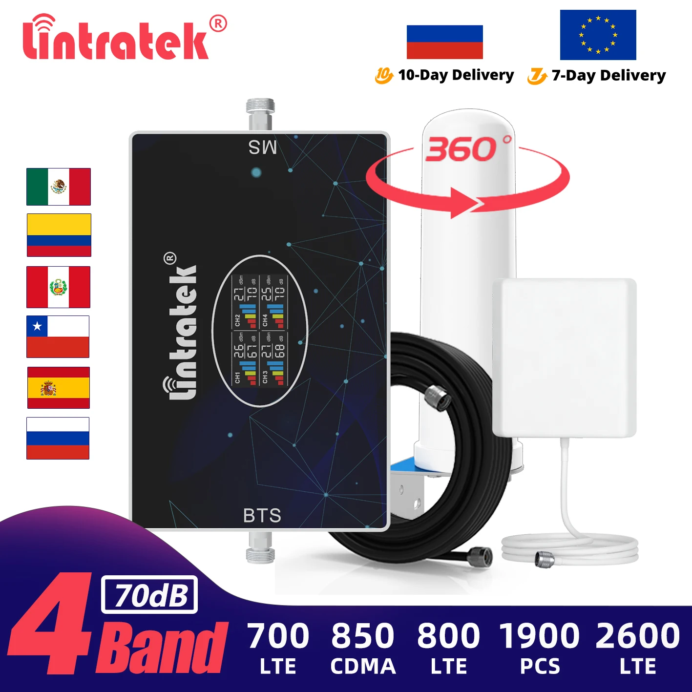 Четырехдиапазонный ретранслятор сигнала Lintratek 70db B28 LTE 800 2600 1700 1900 усилитель сотового телефона 2G 3G 4G 700 усилитель сотовой связи полный комплект