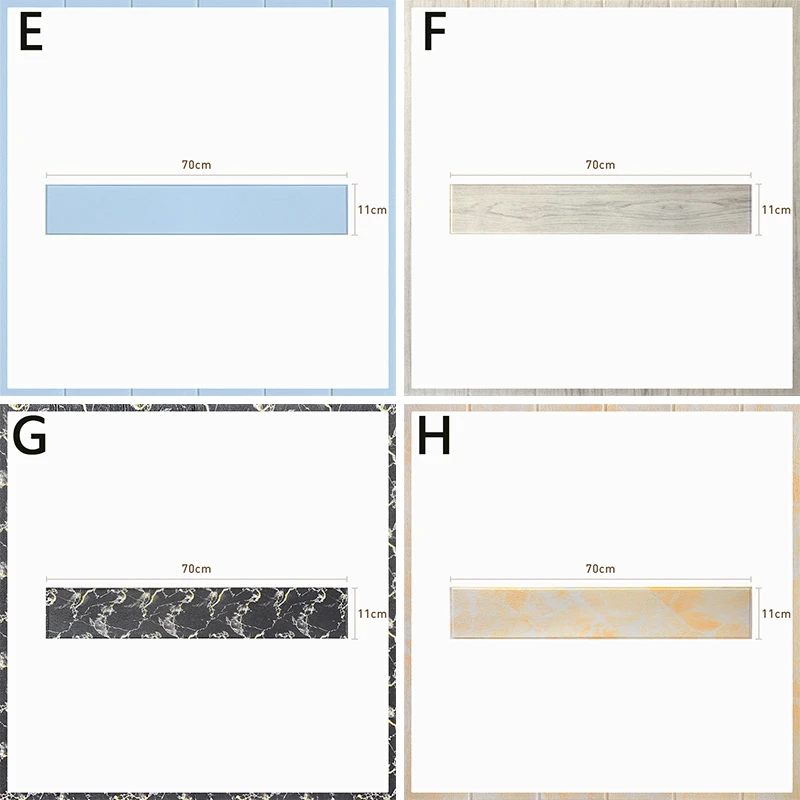 Описание: Материал ПВХ, термостойкий и устойчивый к коррозии Самоклеящиеся настенные наклейки, сильное прилипание, долговечность Водонепроницаемый, устойчивый к плесени, легко моется Способ применения: Снимите слой бумаги с обратной стороны, затем приклейте плоские обои к стене. Использование: стена на кухне, стена в ванной, фон для телевизора в гостиной и т. д. Материал: ПВХ Размер: 70 см x 11 см Цвет: как показано Количество: 1 шт. Посылка входит: 1 наклейка на плинтус