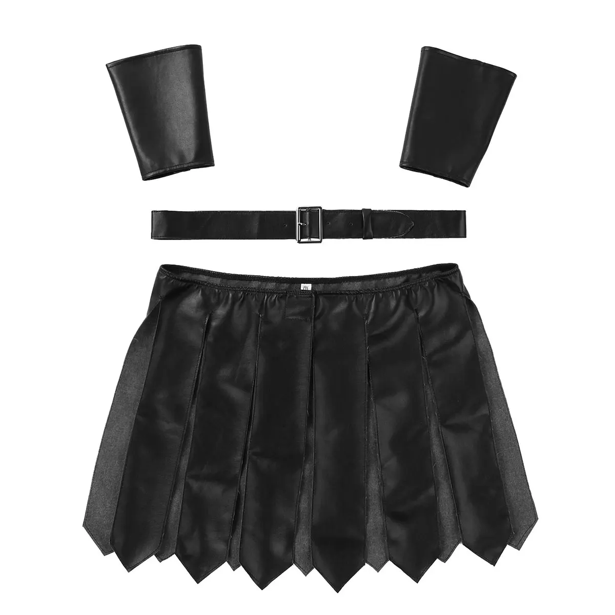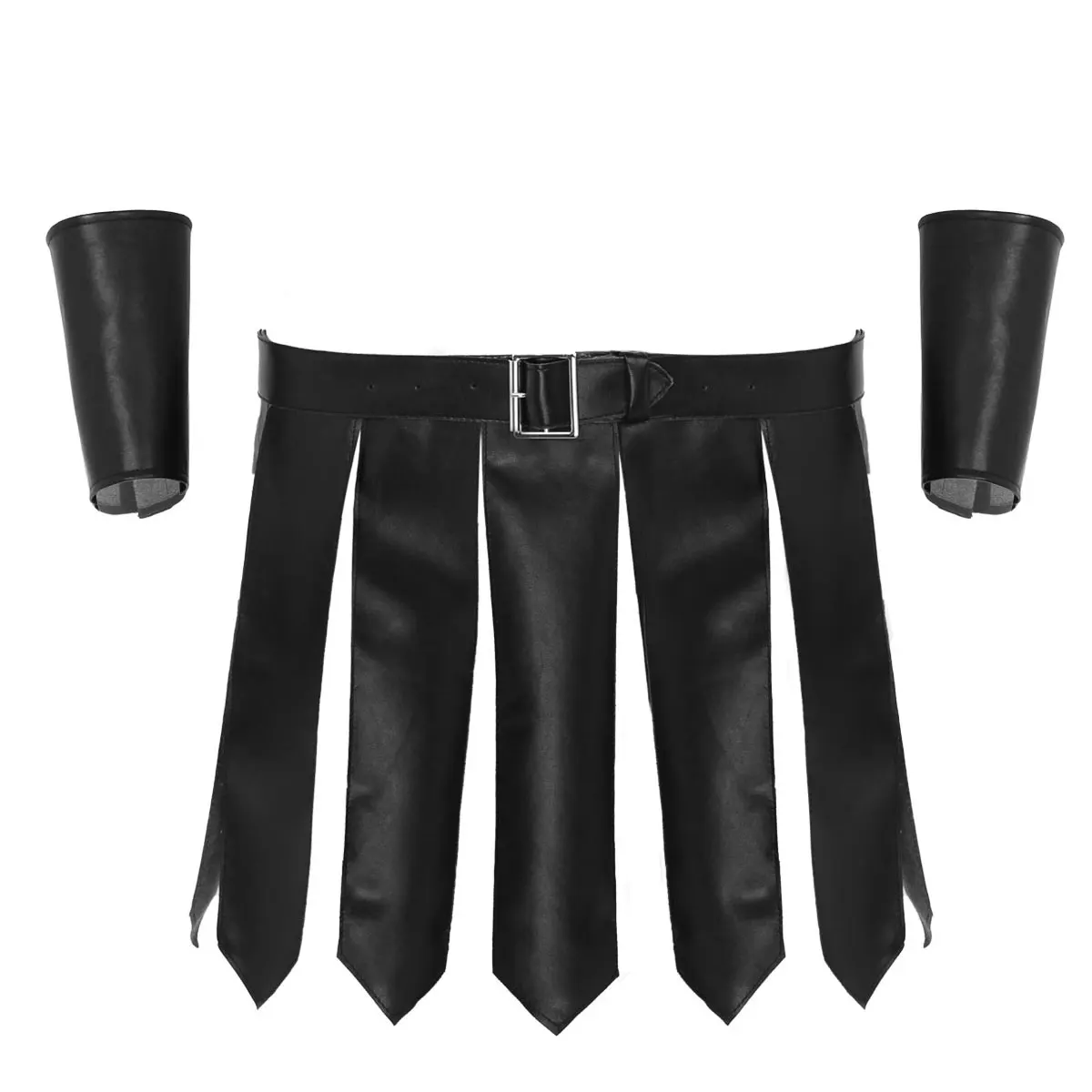 Комплект нижнего белья для мужчин, сексуальный комплект из искусственной кожи, гладиатор, килт, нижнее белье, юбка с ремнем, браслеты, косплей, римский костюм гладиатора, аксессуары