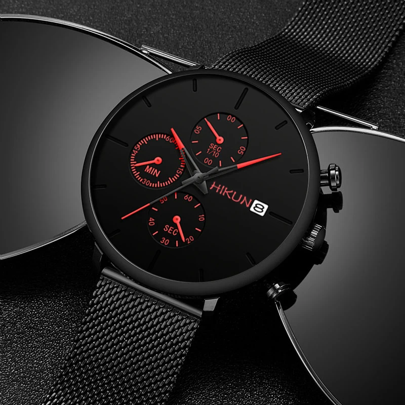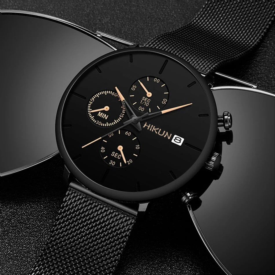 Мужские часы 2020, мужские кварцевые часы, повседневные тонкие сетч...