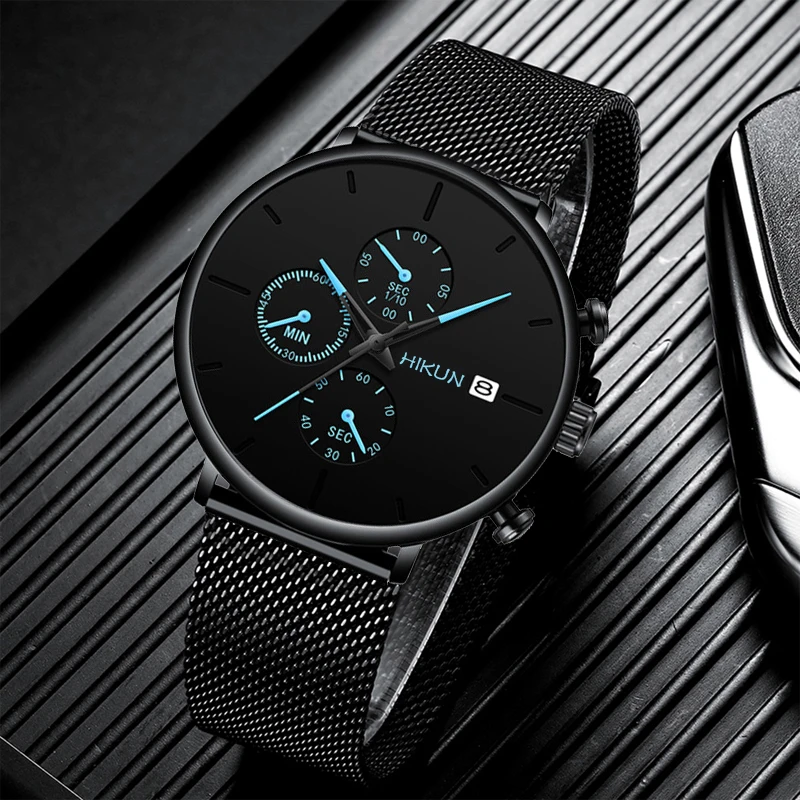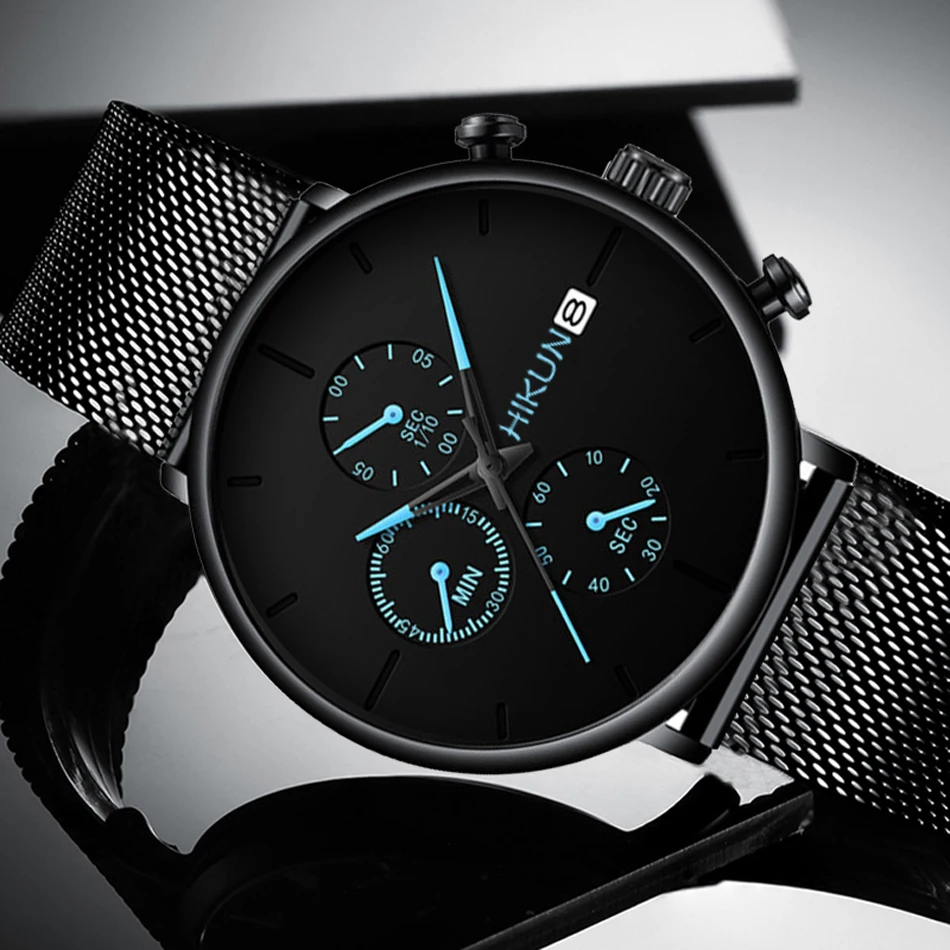 Мужские модные часы из нержавеющей стали с сетчатым ремешком и кале...