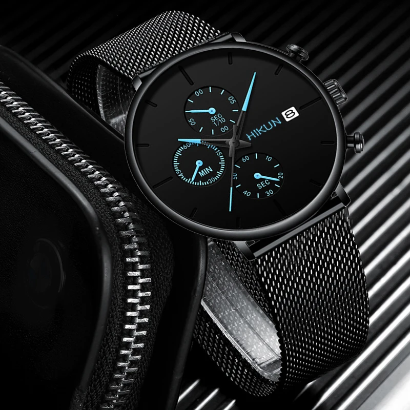 Часы наручные мужские с сетчатым браслетом, Модные Кварцевые Спортивные деловые повседневные, с календарем, из нержавеющей стали