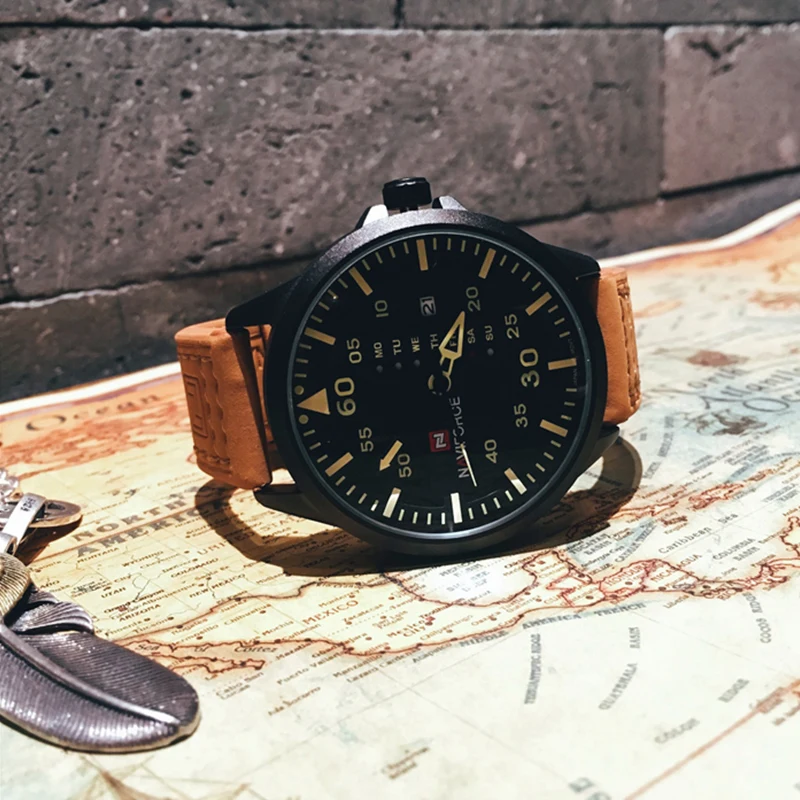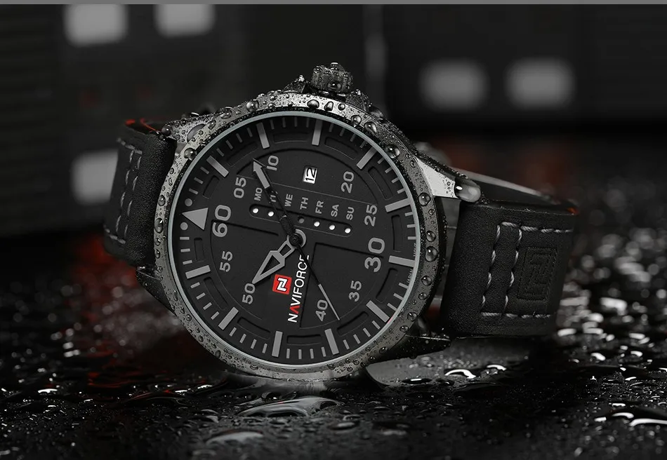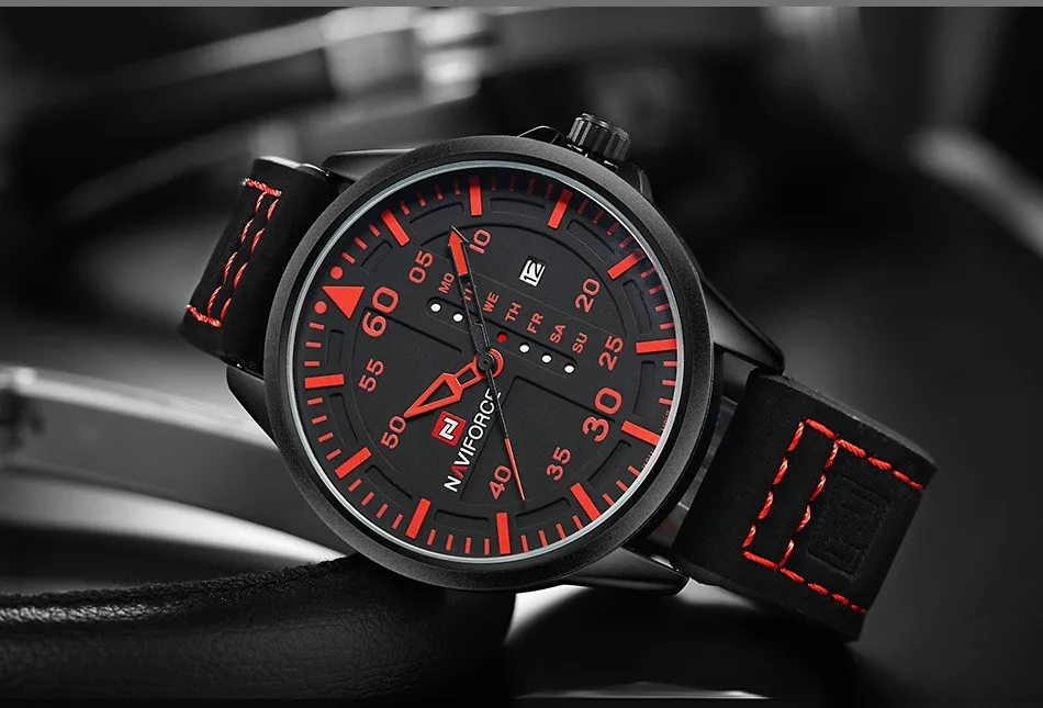 Часы наручные NAVIFORCE Мужские кварцевые, роскошные Брендовые повседневные спортивные в стиле милитари, с кожаным ремешком