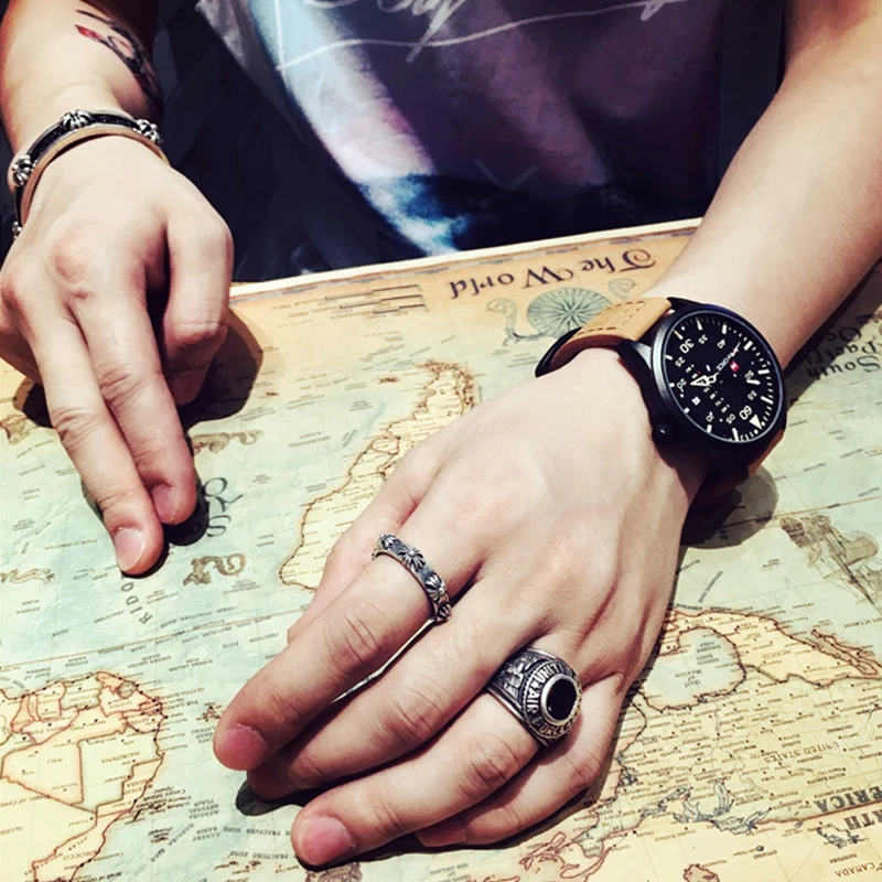 Часы мужские кварцевые в стиле милитари, с кожаным ремешком