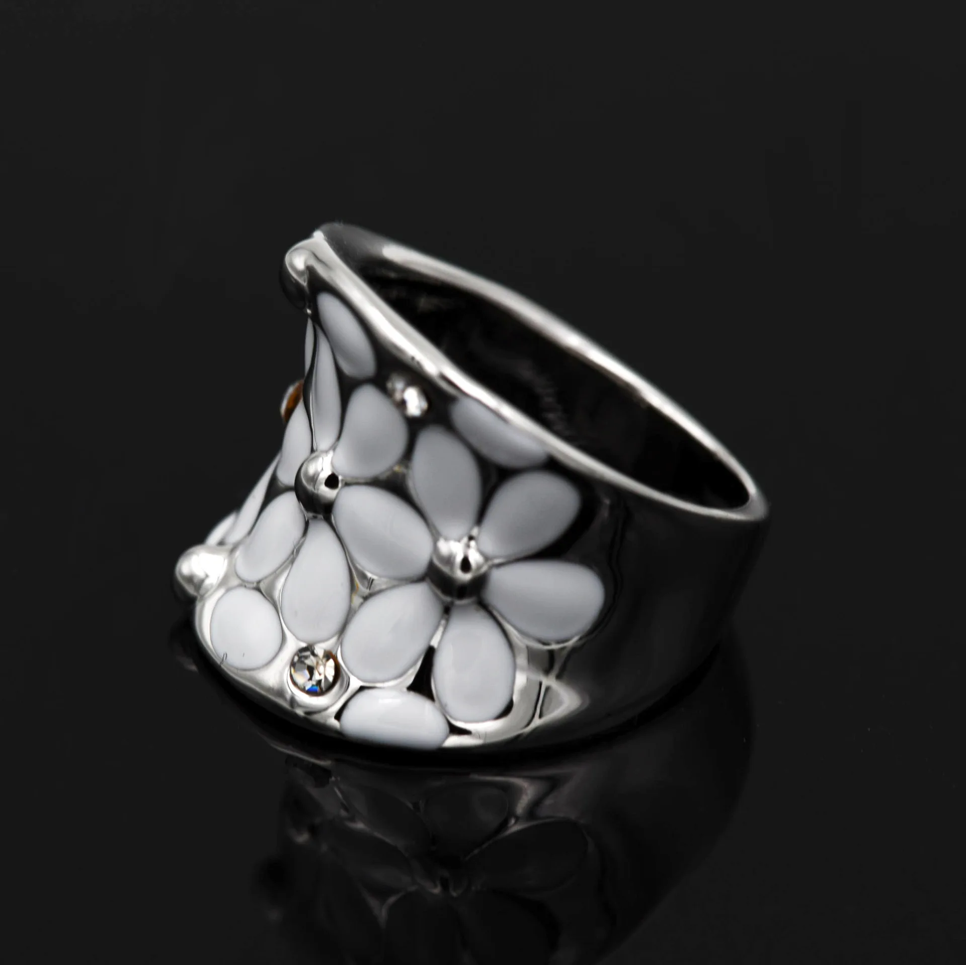 Кольцо женское, изысканная, с эмалью, из розового золота кольцо с хризантемой пробы