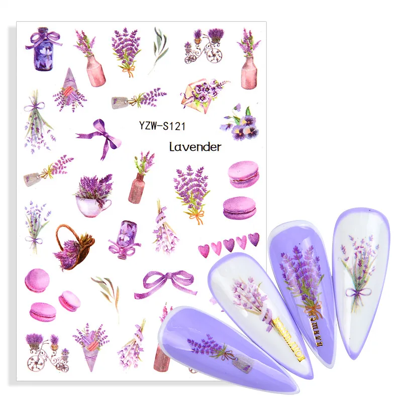 Самоклеящиеся 3D-Наклейки для ногтей, фиолетовая лаванда, переводны...