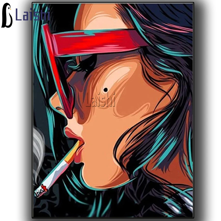 5D квадратная круглая Алмазная картина сделай сам, граффити, сексуальная Женская Вышивка крестом, портрет, подарок ручной работы, искусство, сигарета, украшение для дома