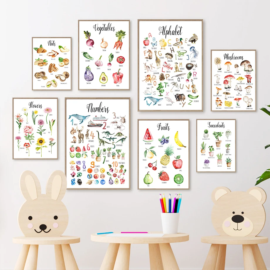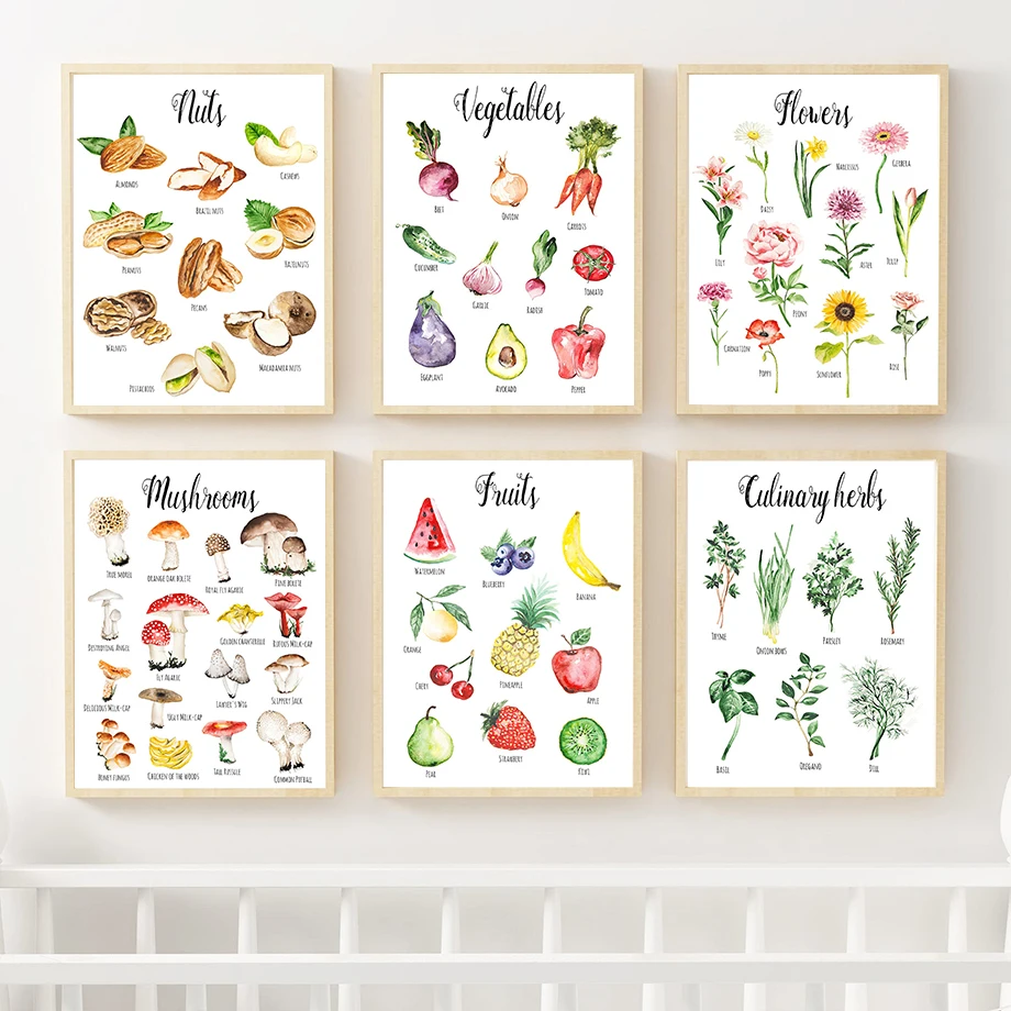 Картина на холсте с изображением овощей, фруктов, цветов, детей