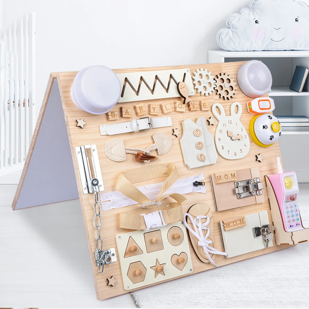 Бизиборд Монтессори, деревянный, для раннего развития, сенсорные игрушки, игрушки для мелкой моторики, для мальчиков и девочек 1-3 лет