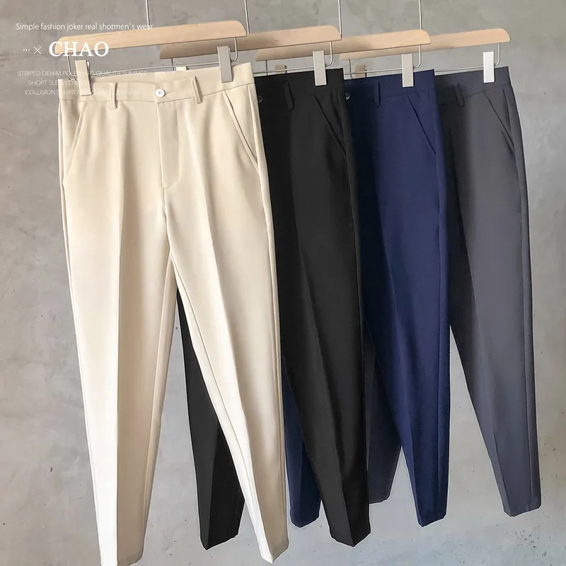 Мужские деловые брюки до щиколотки, бежевые, черные, облегающие, дл...