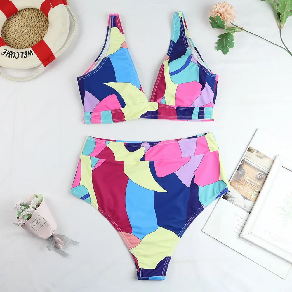 Пикантные Высокая Талия, бикини, купальники, Для женщин купальник высокого кроя бикини купальный костюм с пуш-ап 2021 лето, с рисунком, бикини, набор