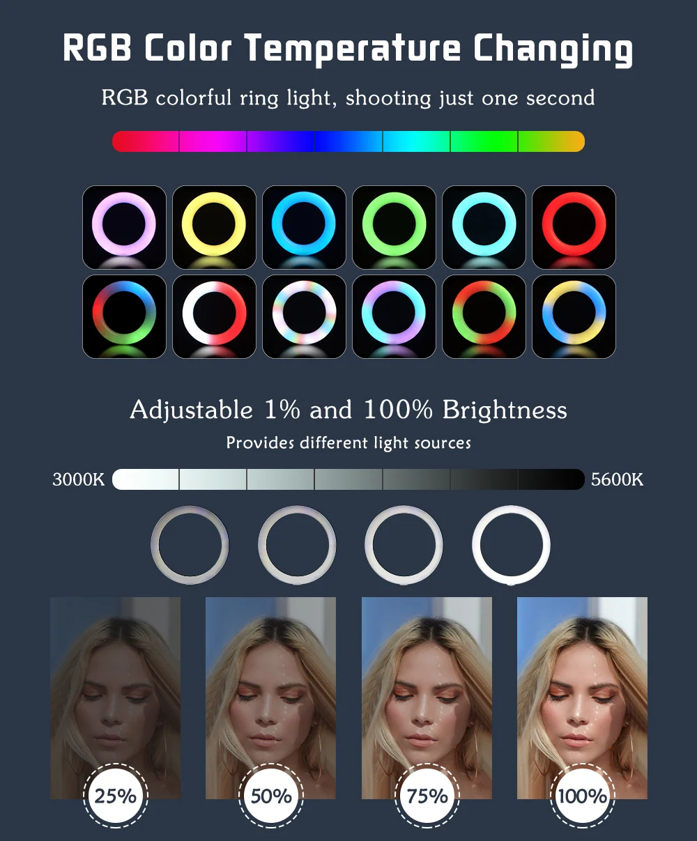 Features 12SH 10inch/26cm RGB Ring Light For Makeup Live Stream