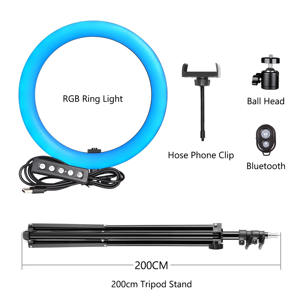 Features 20SH 10inch/26cm RGB Ring Light Photo Ringlight Led With Tripod Stand
