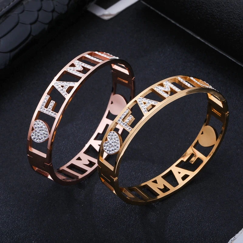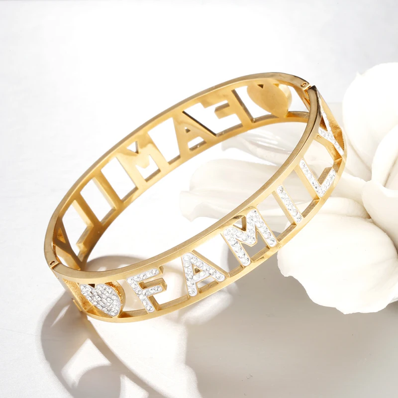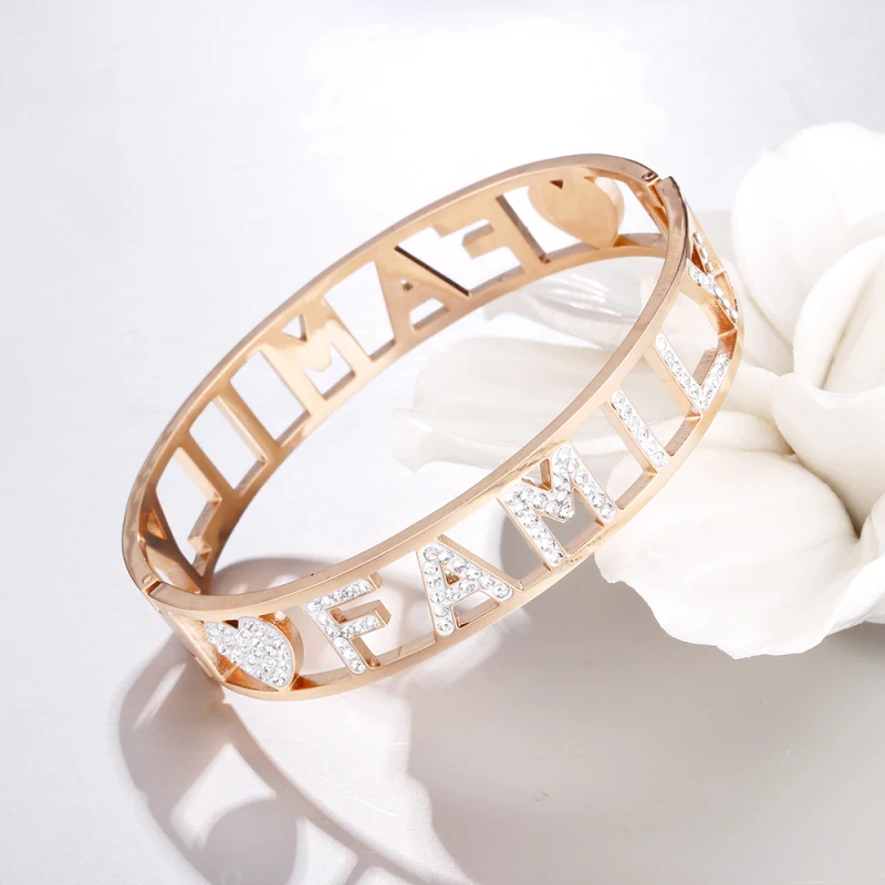 Для мужчин и женщин из нержавеющей стали, браслет для женщин, белая с украшением в виде кристаллов для всей семьи браслет с надписью золотыми Цвет роскошные свадебные ювелирные изделия