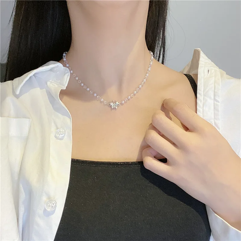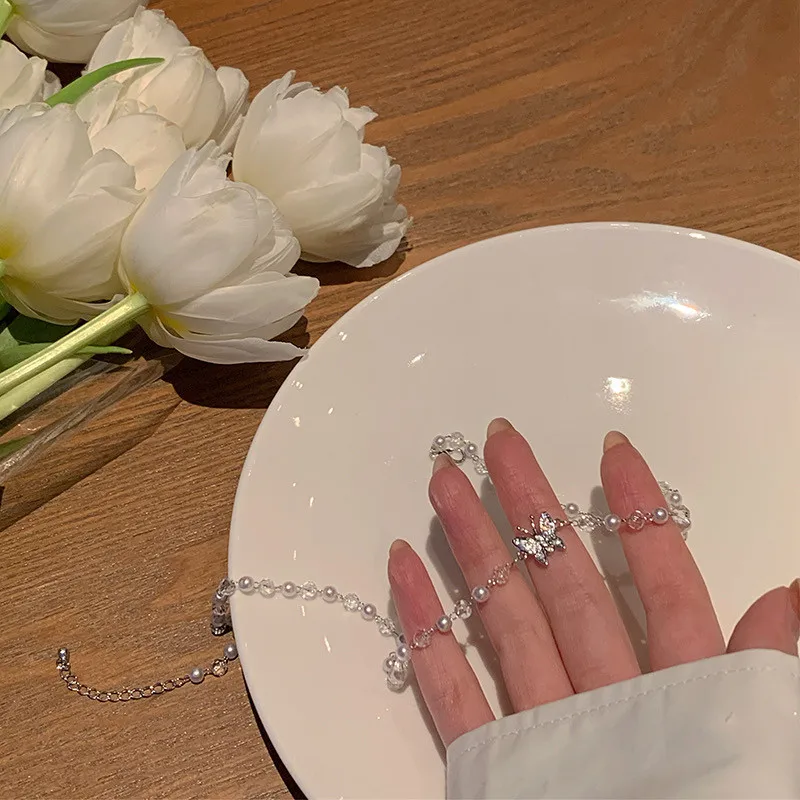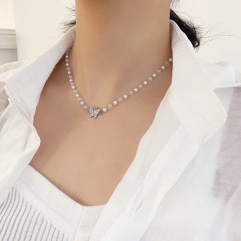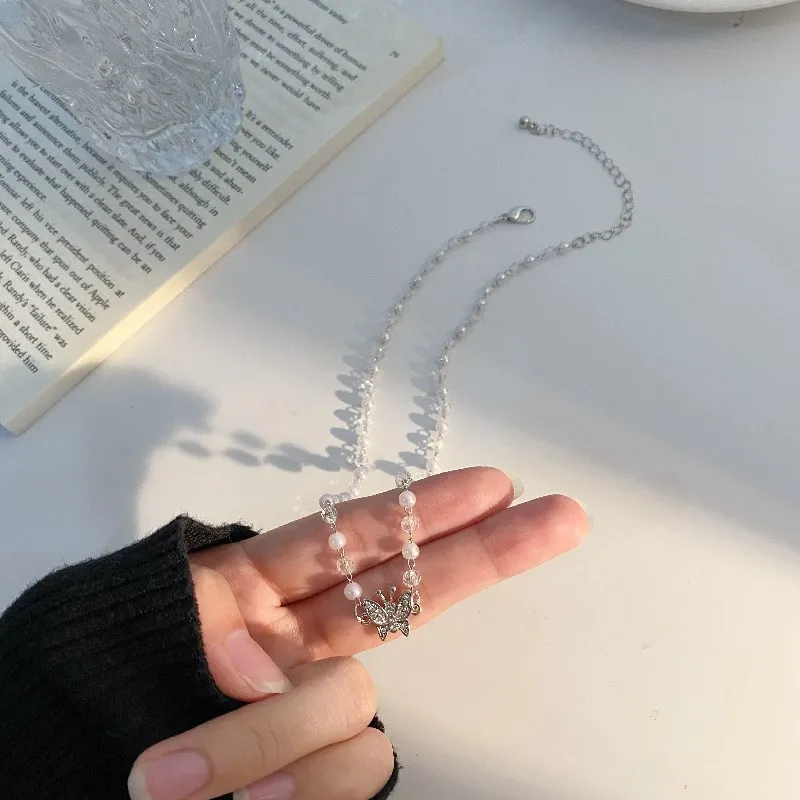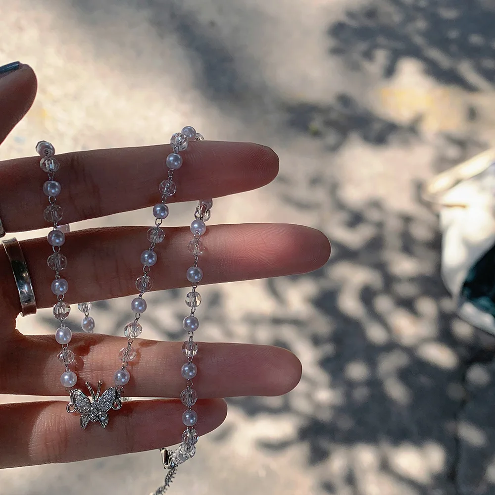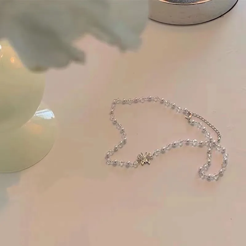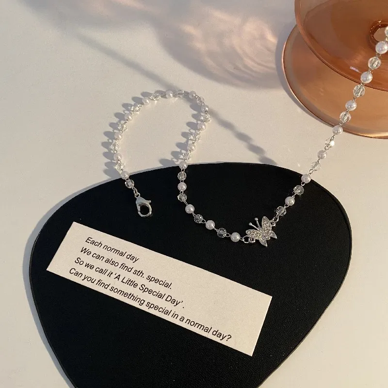 Ожерелье-цепочка с жемчужинами и подвеской-бабочкой