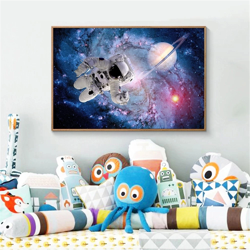 Холщовые картины, плакат астронавта, планет, земля, луна, плакат, домашний декор, космонаты, пространство, гостиная, современное настенное искусство, спутник