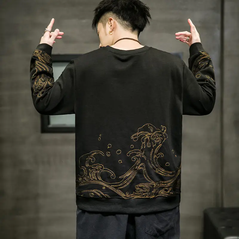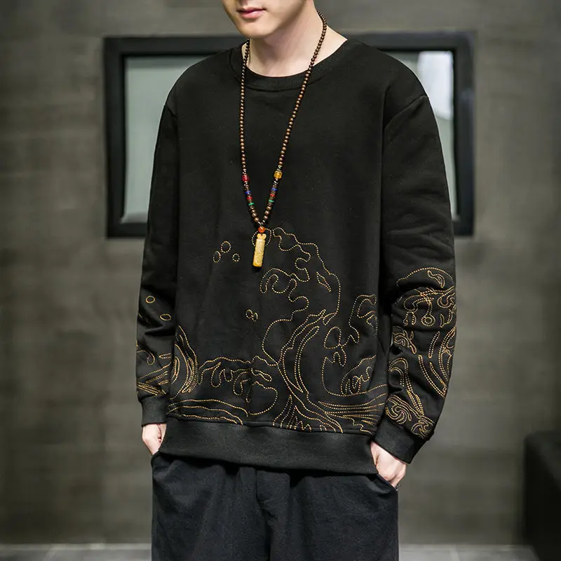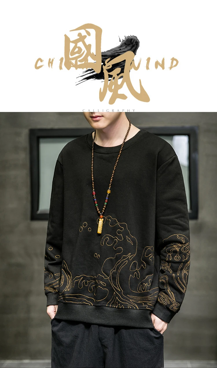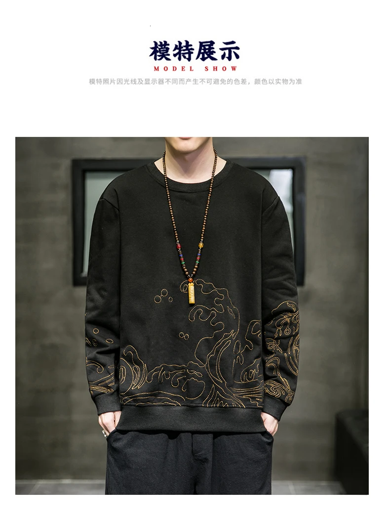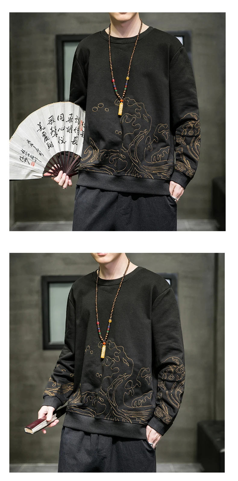 Мужские футболки MrGB весна-лето 2021 мужские топы в китайском стиле свитер с вышивкой с длинным рукавом Свободная большая повседневная одежда