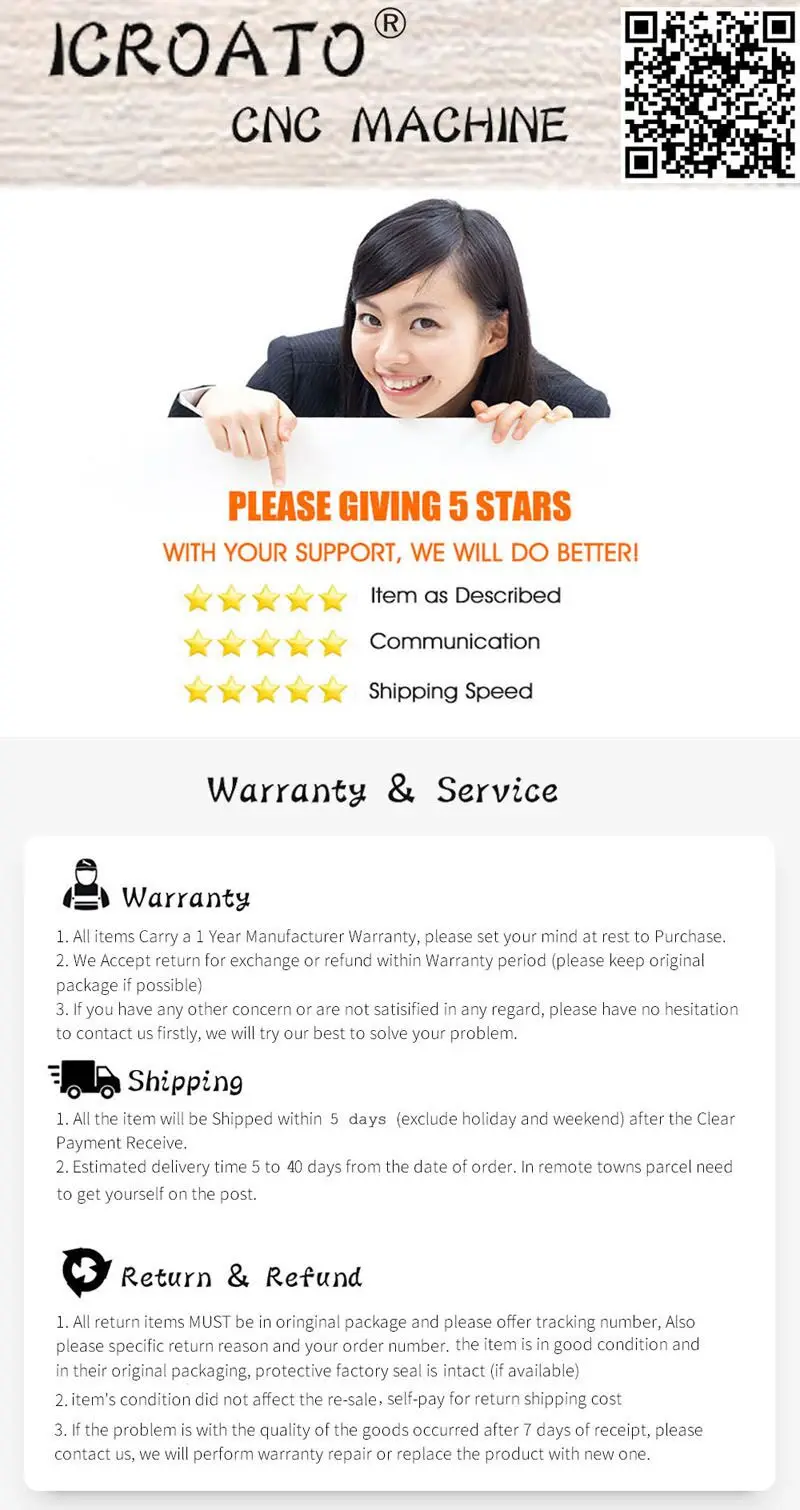 3. Лезвие может быть выгравировано пластиком, деревом, акрилом, ПВХ, печатной платой, деревом или подобным материалом 4. ER11 требует термоусадочной установки. И шпиндель, и ER11 имеют правильный диаметр, но ER11 предназначен для того, чтобы быть минус терпение к шпинделю, так что вы не можете положить его непосредственно. 5. Автономный контроллер поддерживает автономную работу, вам не нужно будет подключаться к компьютеру 6. У нас есть 7 вариантов, вы можете выбрать Автономный контроллер или лазер 7. Мы предлагаем АДАПТЕРНЫЕ вилки для Европы и США. Я отправлю правильные вилки в соответствии с вашей страной. 8. Если вам нужно больше аксессуаров, пожалуйста, свяжитесь со мной. Примечание: 10000 МВт и 15000 мВт Лазерные Гравировальные металлические материалы, такие как нержавеющая сталь и Глинозем О программном обеспечении Мы отправляем товары, включая программное обеспечение и инструкции по установке, вы получите компакт-диск, вы также можете сообщить мне свой адрес электронной почты, я могу отправить вам программное обеспечение и инструкции по установке. Гарантийное обслуживание Мы предоставляем гарантию на один год, и мы решим все ваши проблемы после продажи! Мы проверим все товары перед отправкой, мы гарантируем, что вы получите продукцию высокого качества!