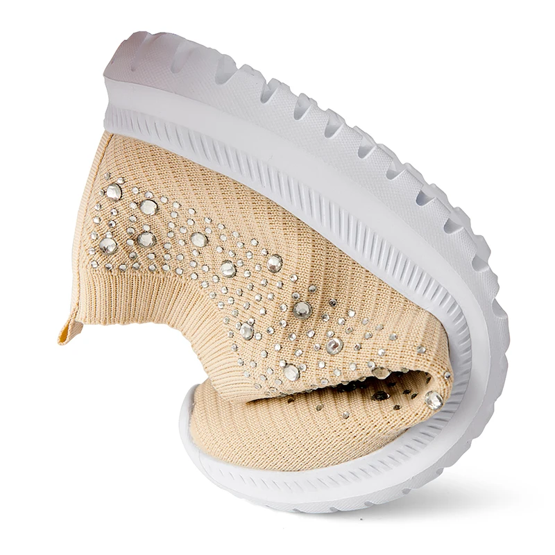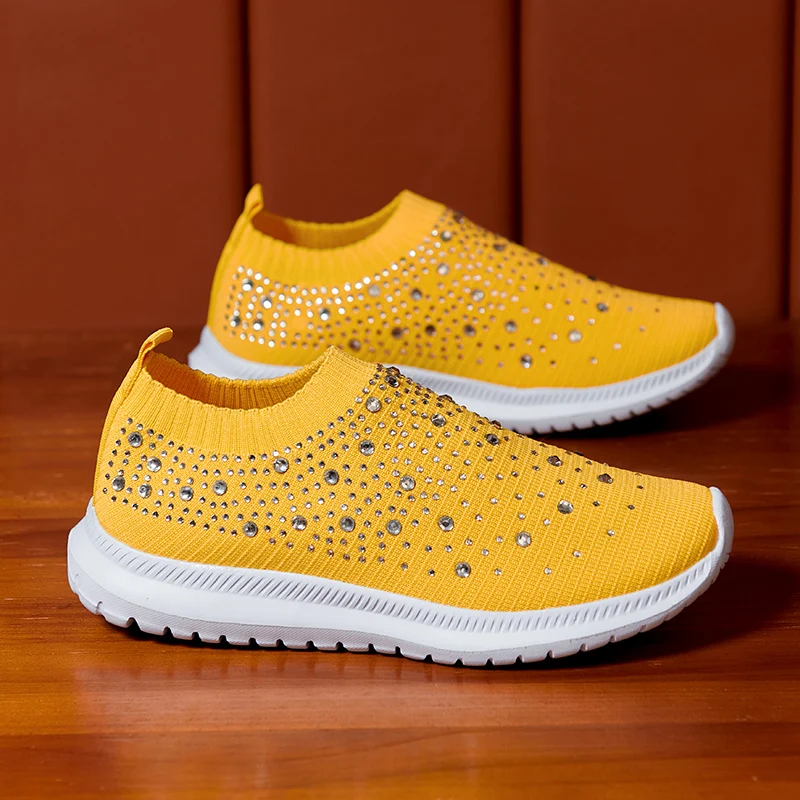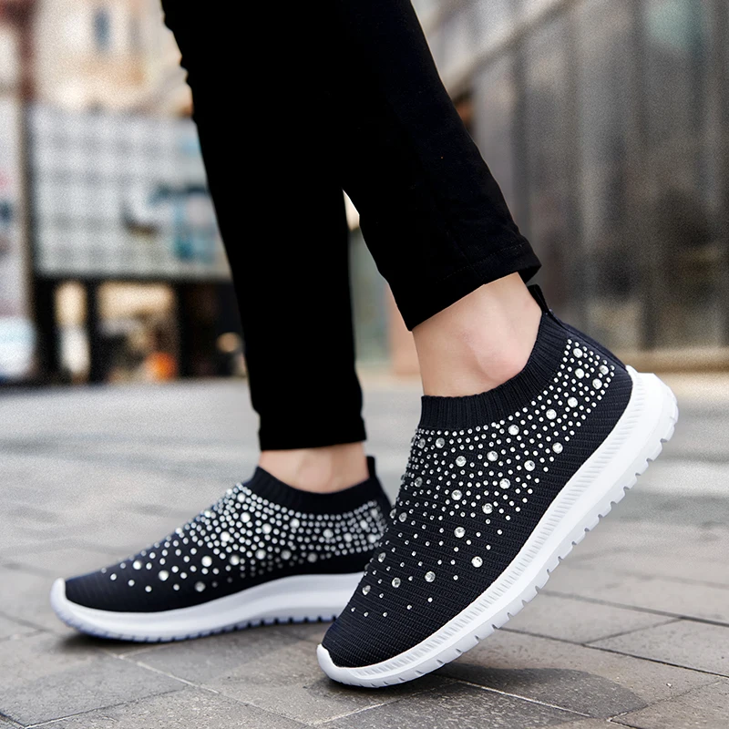 Кроссовки-носки женские на плоской подошве, Повседневные вязаные лоферы, без шнуровки, роскошная Вулканизированная обувь с кристаллами