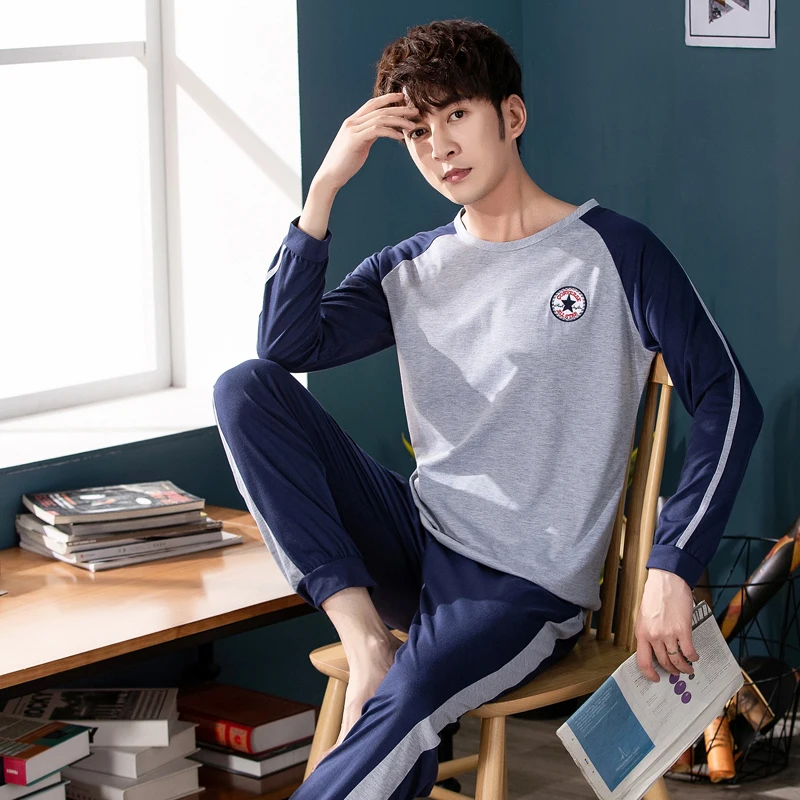 Пижамный набор брюки зима подростковые обычные домашняя одежда для мужчин, для детей, одежда для сна, пижамы, мужские осенние комплекты одежды свободного кроя для отдыха из хлопка с длинным рукавом