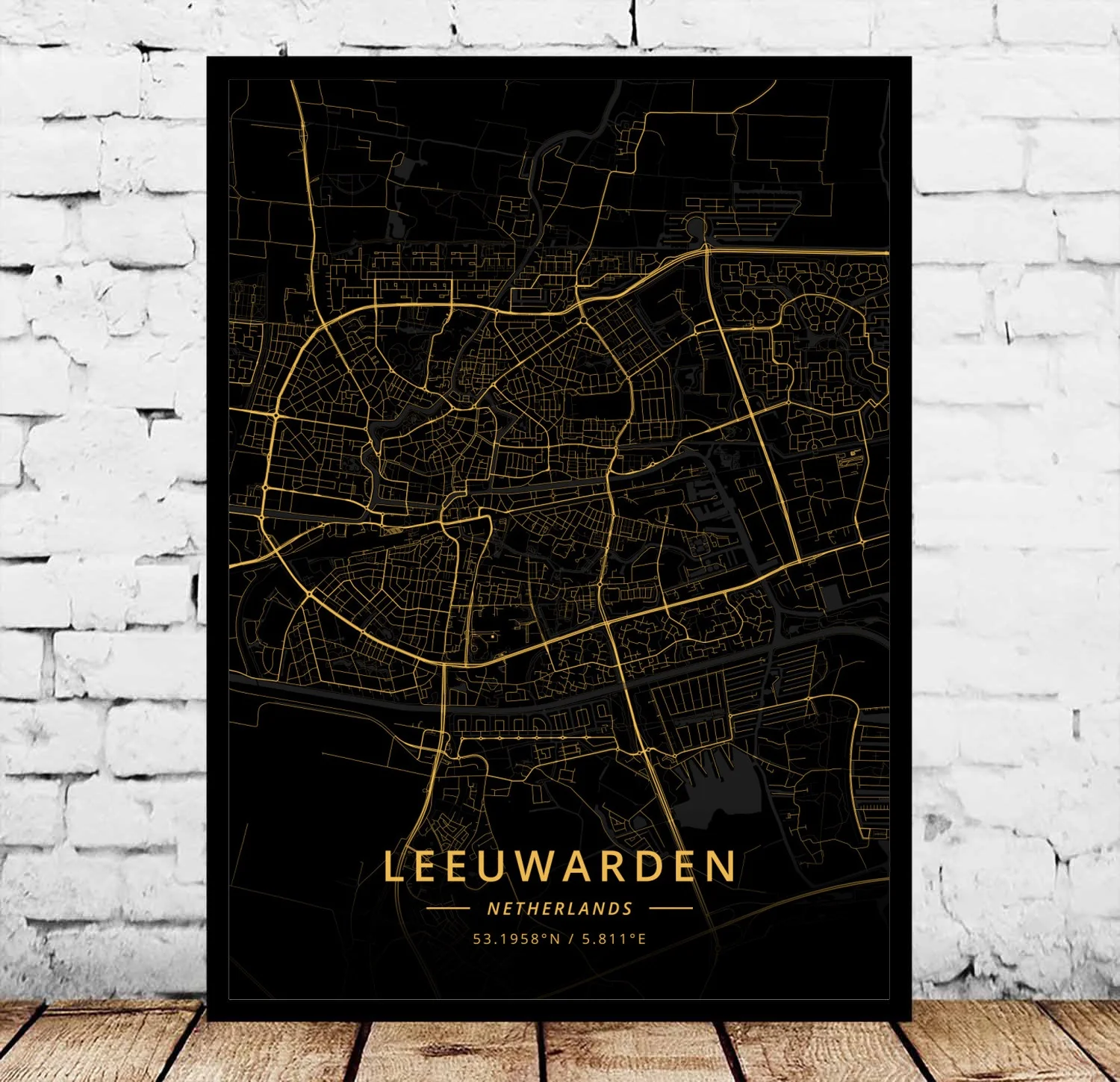Настраиваемая линия города Льеж черная белая карта фотография холст...
