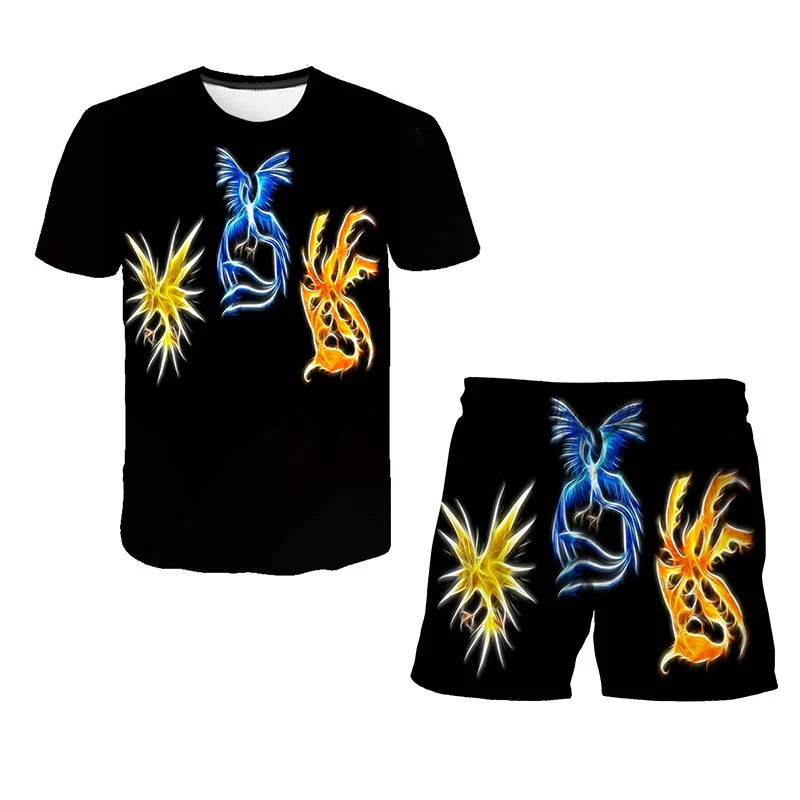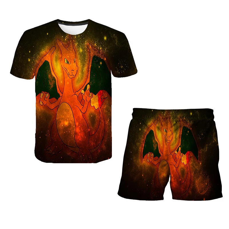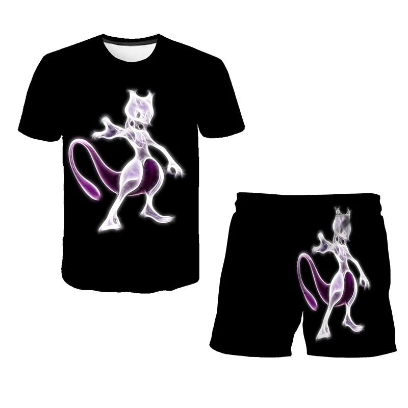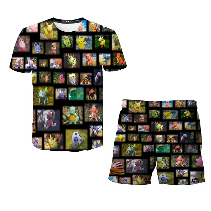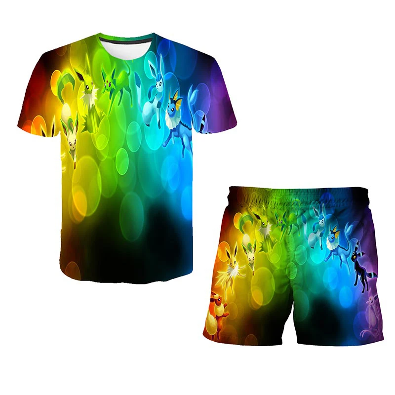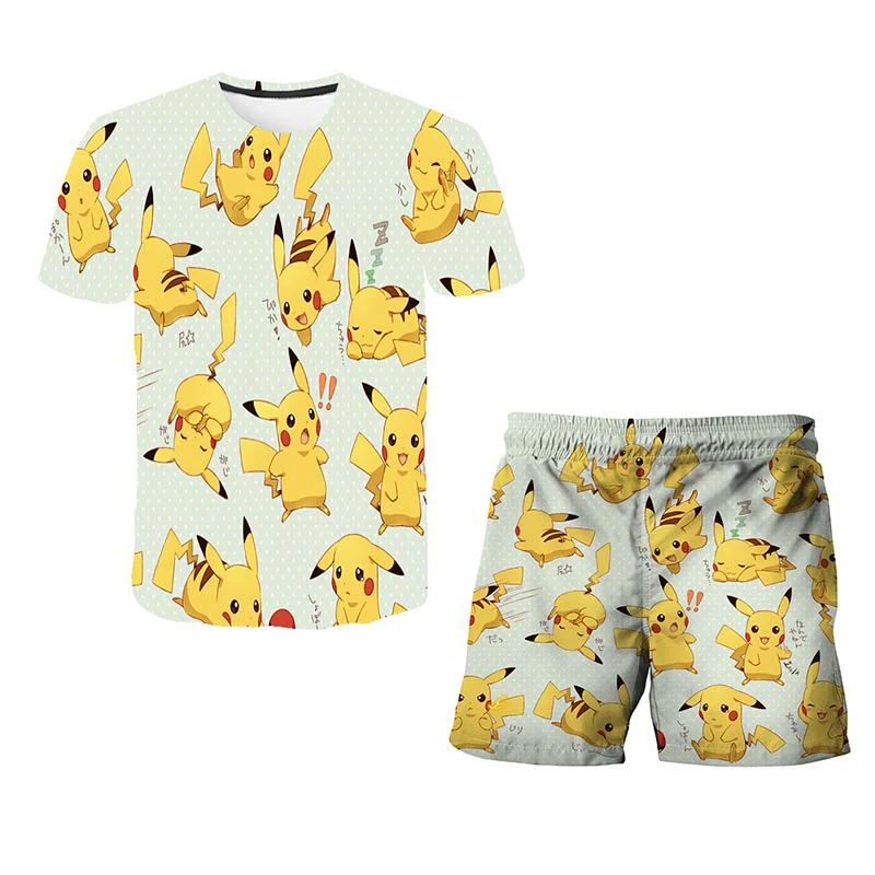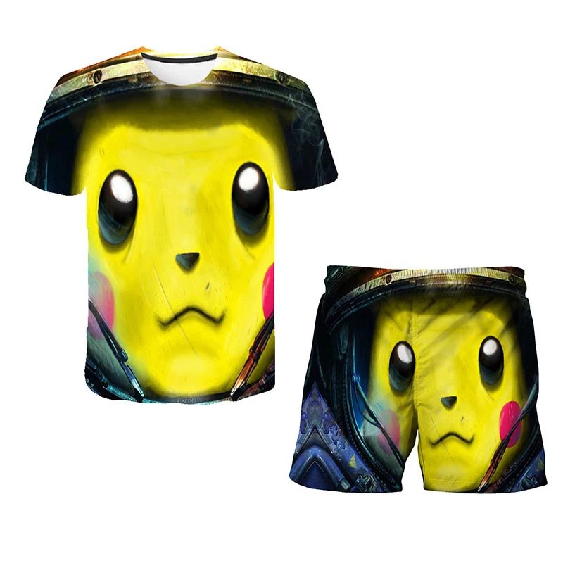 Футболка и шорты для девочек, комплект из 2 предметов, футболка с 3D принтом покемона, детский костюм с аниме покемоном, летняя повседневная одежда для мальчиков и девочек