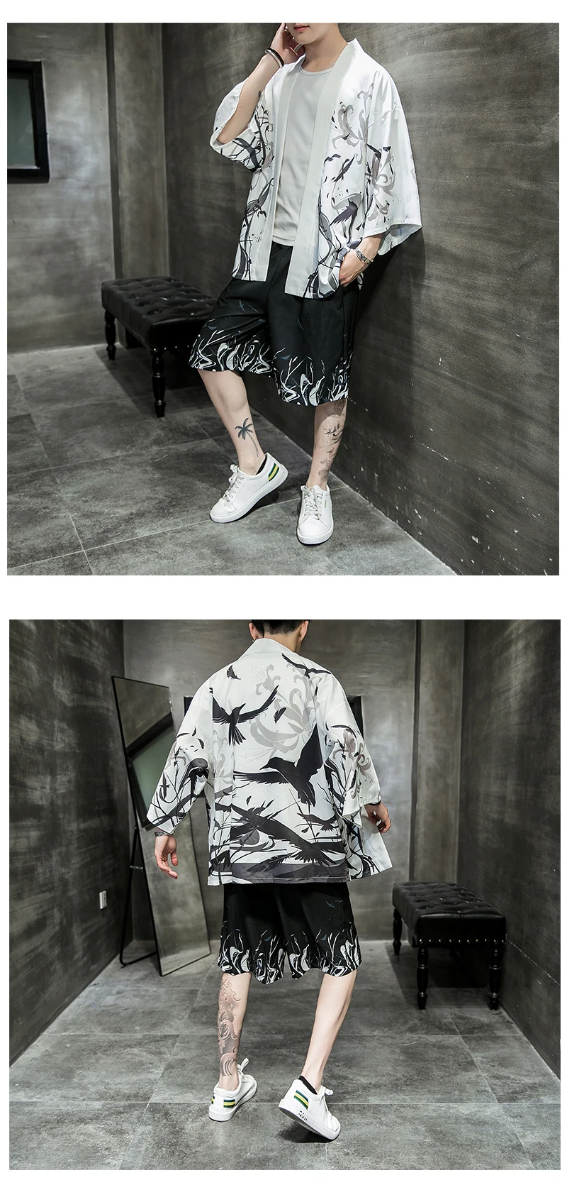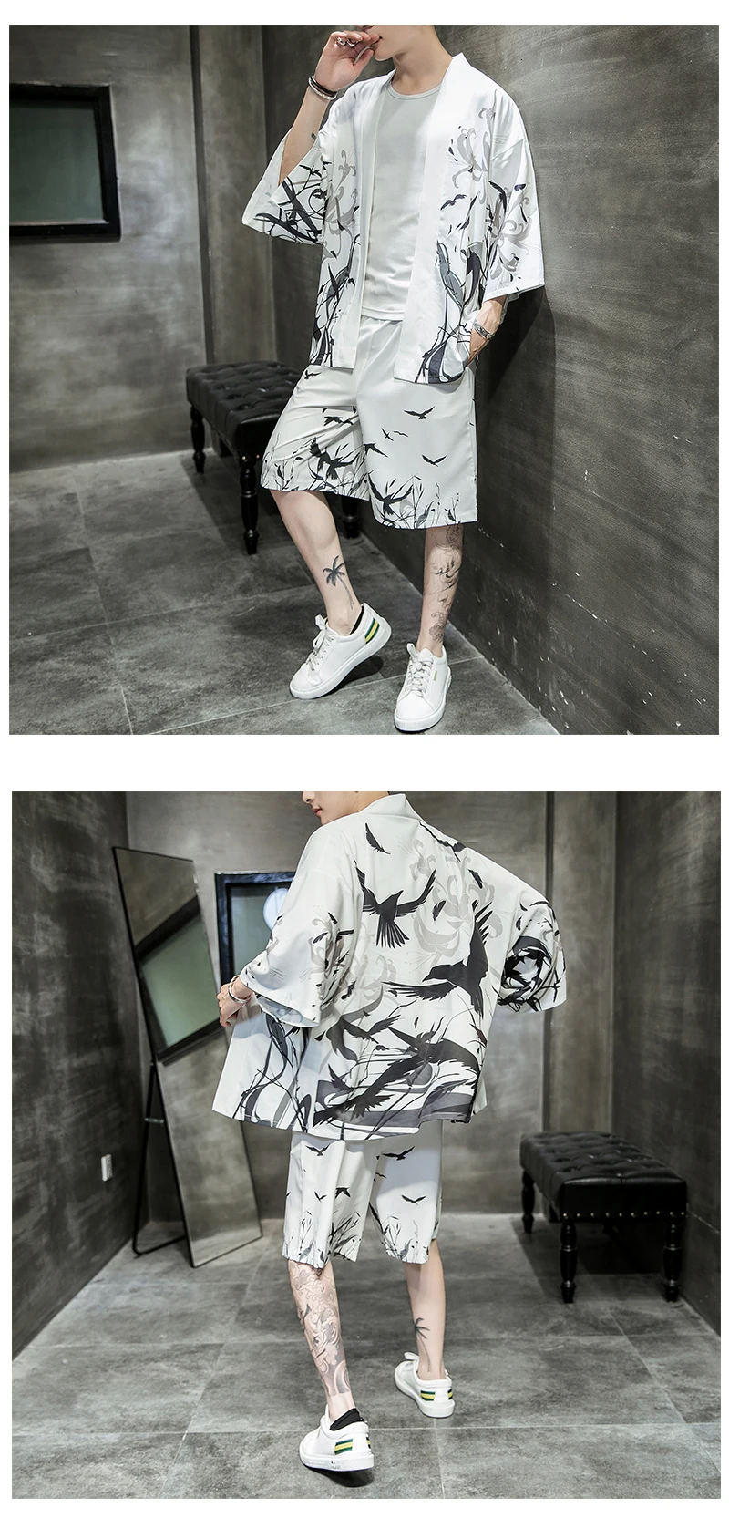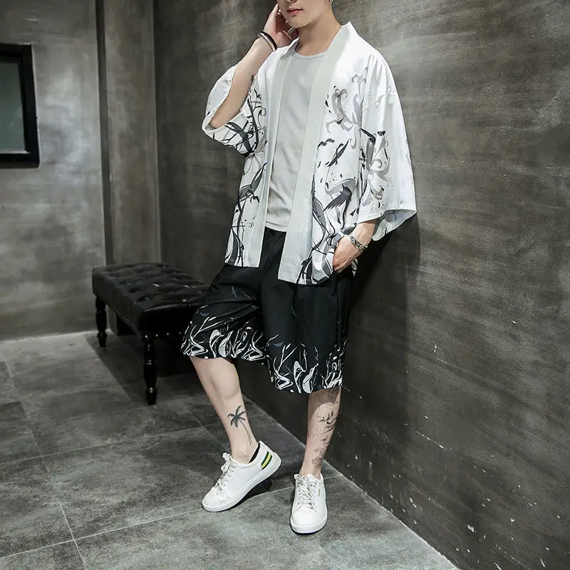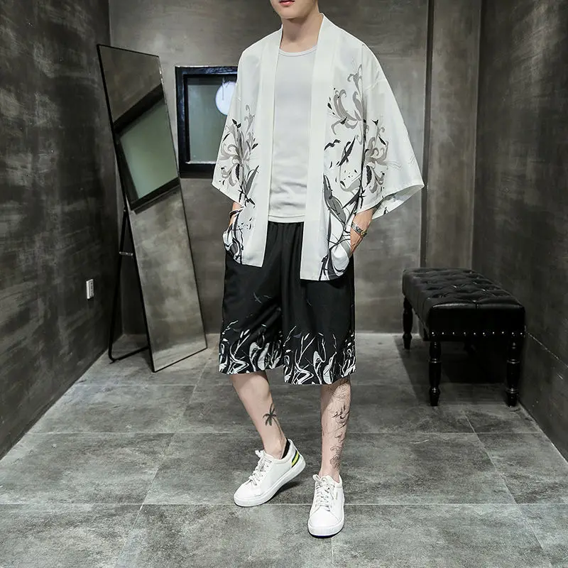 Костюм MrGB мужской в китайском стиле, Свободный Повседневный Комплект из двух предметов, винтажные шорты с принтом, одежда черного и белого цветов, лето 2021