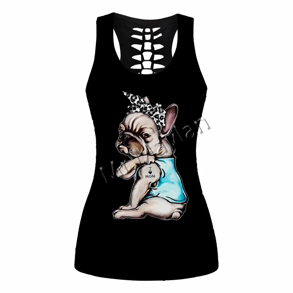 Женский ажурный топ с 3D-принтом, сексуальный жилет с бантом в виде французского бульдога, кавайные майки, одежда для девушек, Прямая поставка