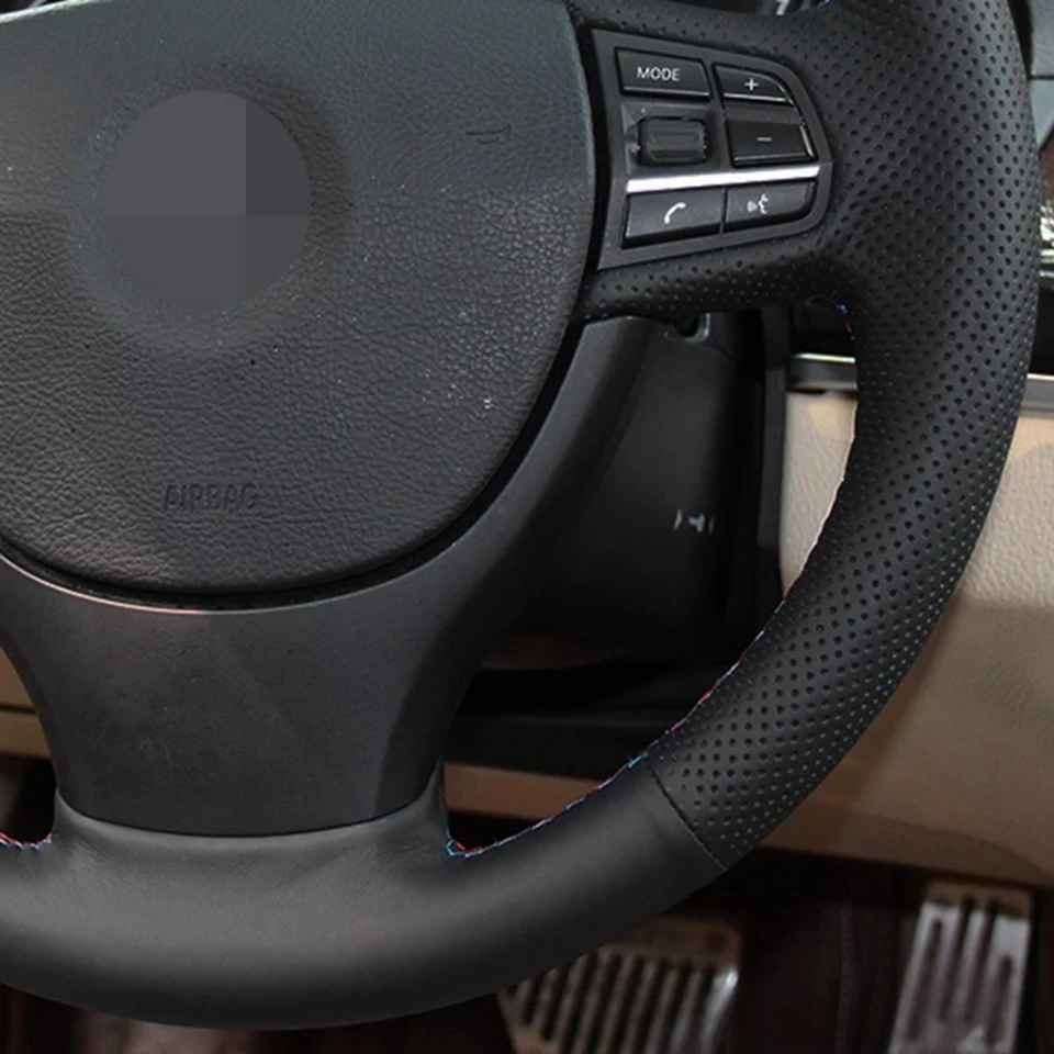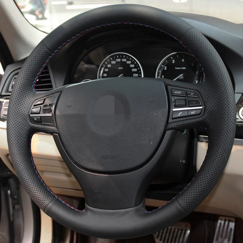 Чехол рулевого колеса автомобиля черного цвета из натуральной кожи ручной работы для BMW F10 F07 (GT) 2009-2017 F11 (универсал) 2010-2017 F01 F02