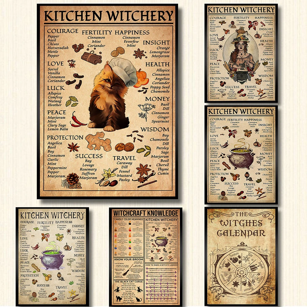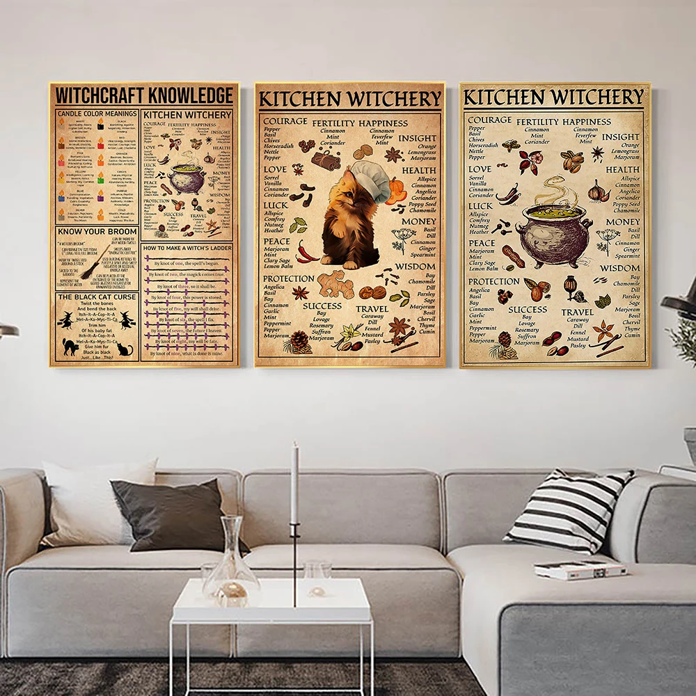 Забавные постеры и винтажные настенные картины для кухни, ведьмы, волшебные знания, художественная живопись, подарки для любителей, домашний декор