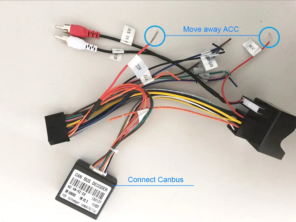 Если вашему автомобилю не нужен canbus, вы можете подключить кабель питания ACC, но Canbus должен быть отключен, как это изображение.