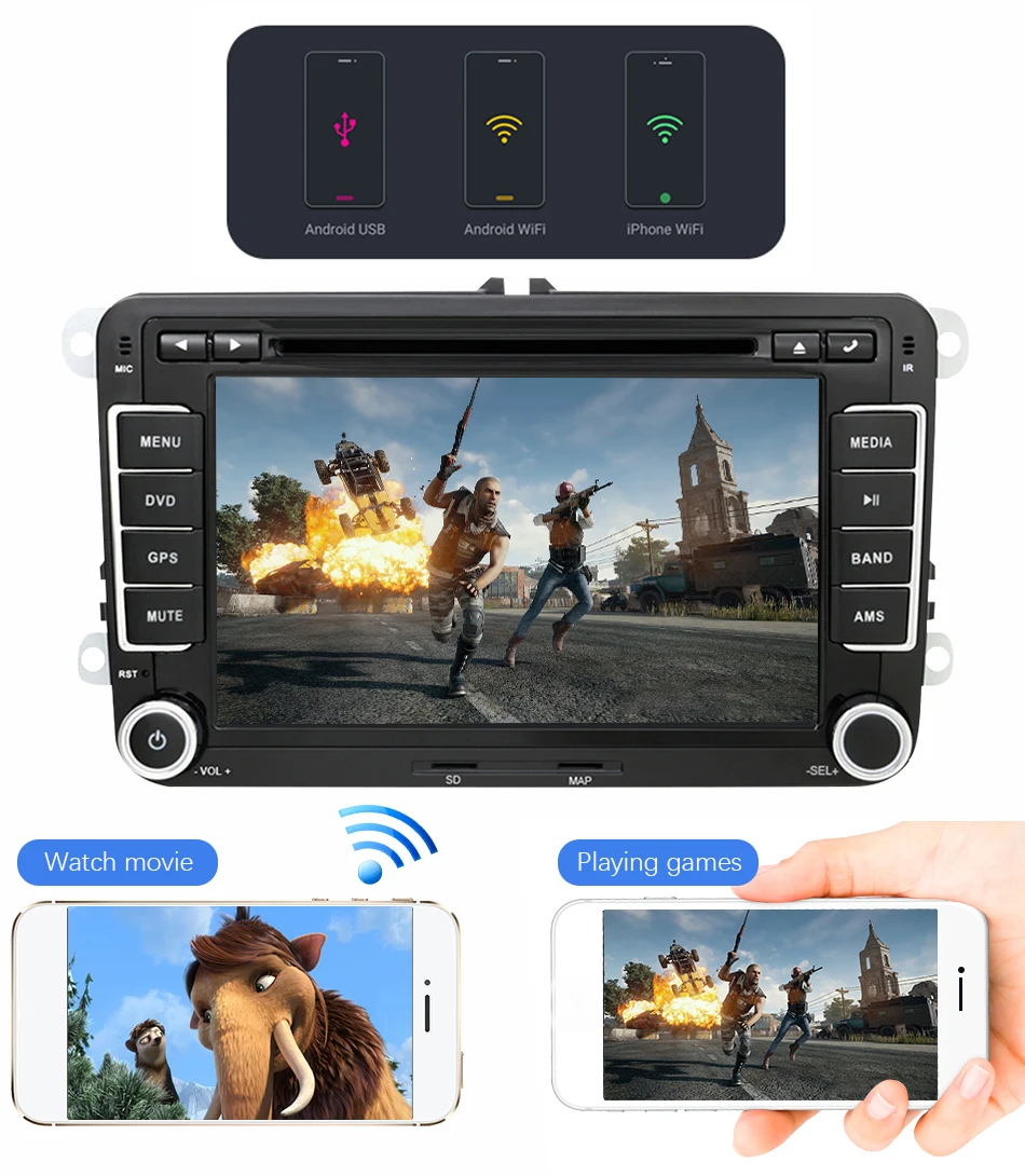 Поддержка зеркальной связи для устройств Android и IOS через USB/ncable или WIFI. Даже достичь взаимного контроля/между этим устройством и вашим телефоном