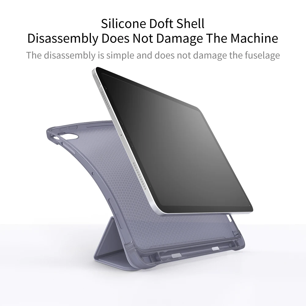 Умный чехол из искусственной кожи, мягкий силиконовый чехол из ТПУ.Четыре угла утолщенные подушки безопасности, все включено анти-осенняя амортизирующая сила удара, сильнее.Нижние сотовые отверстия имеют хорошую теплоотдачу.С дизайном лотка для ручек вы можете разместить карандаш для Apple.Поддержка функции сна или пробуждения.