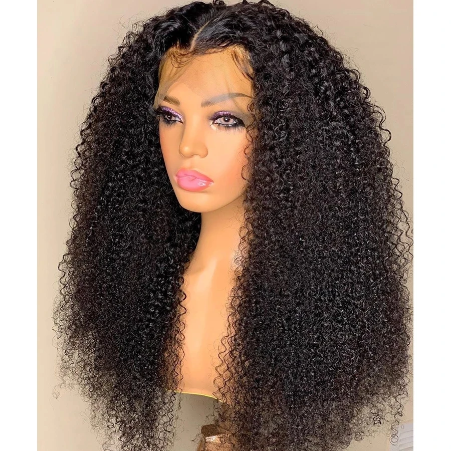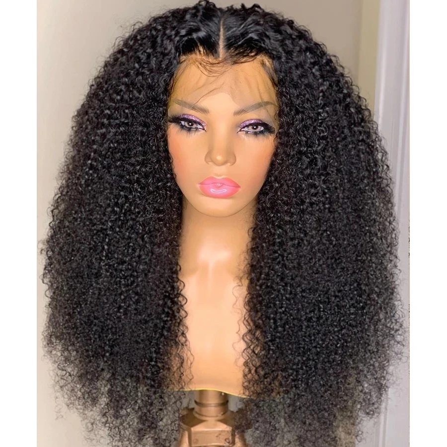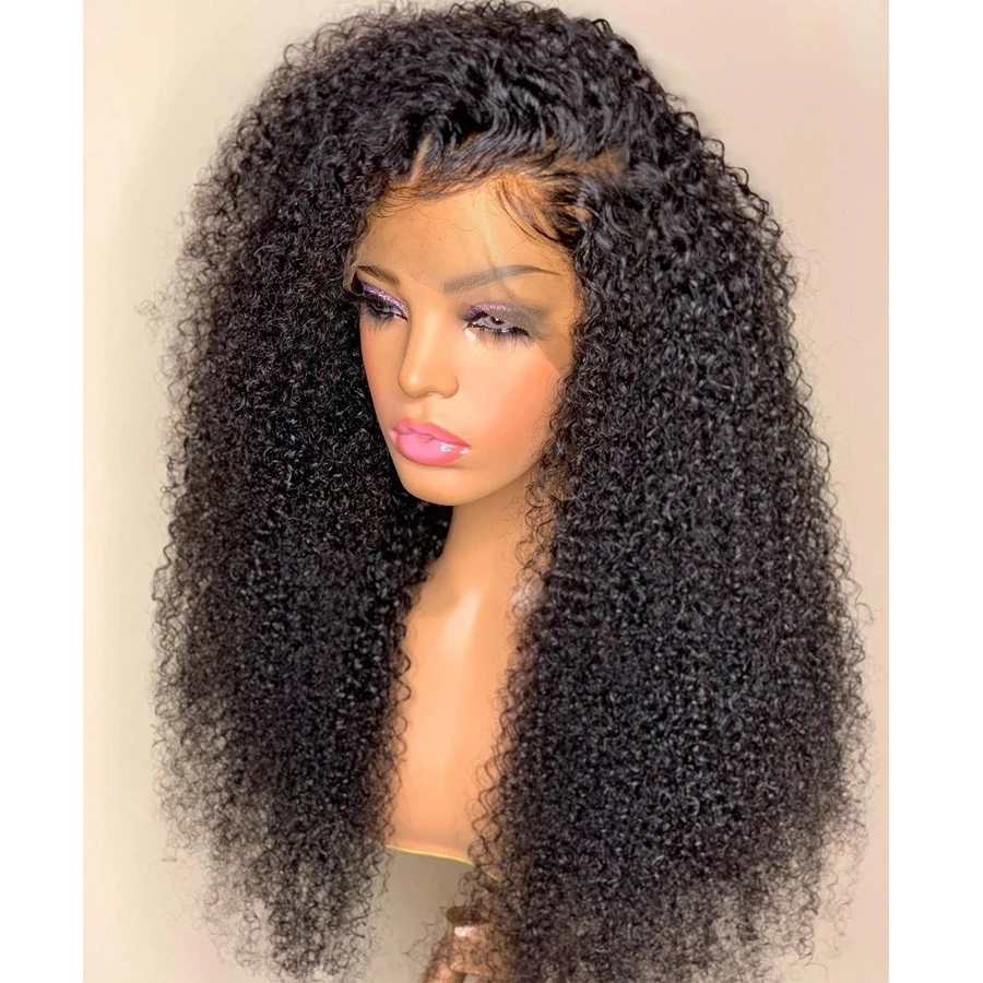 Афро кудрявые, кудрявые, безклеевые, синтетические волосы, натуральные черные парики на сетке спереди для женщин, 26 дюймов, длинный волоконный парик средней части для ежедневного использования