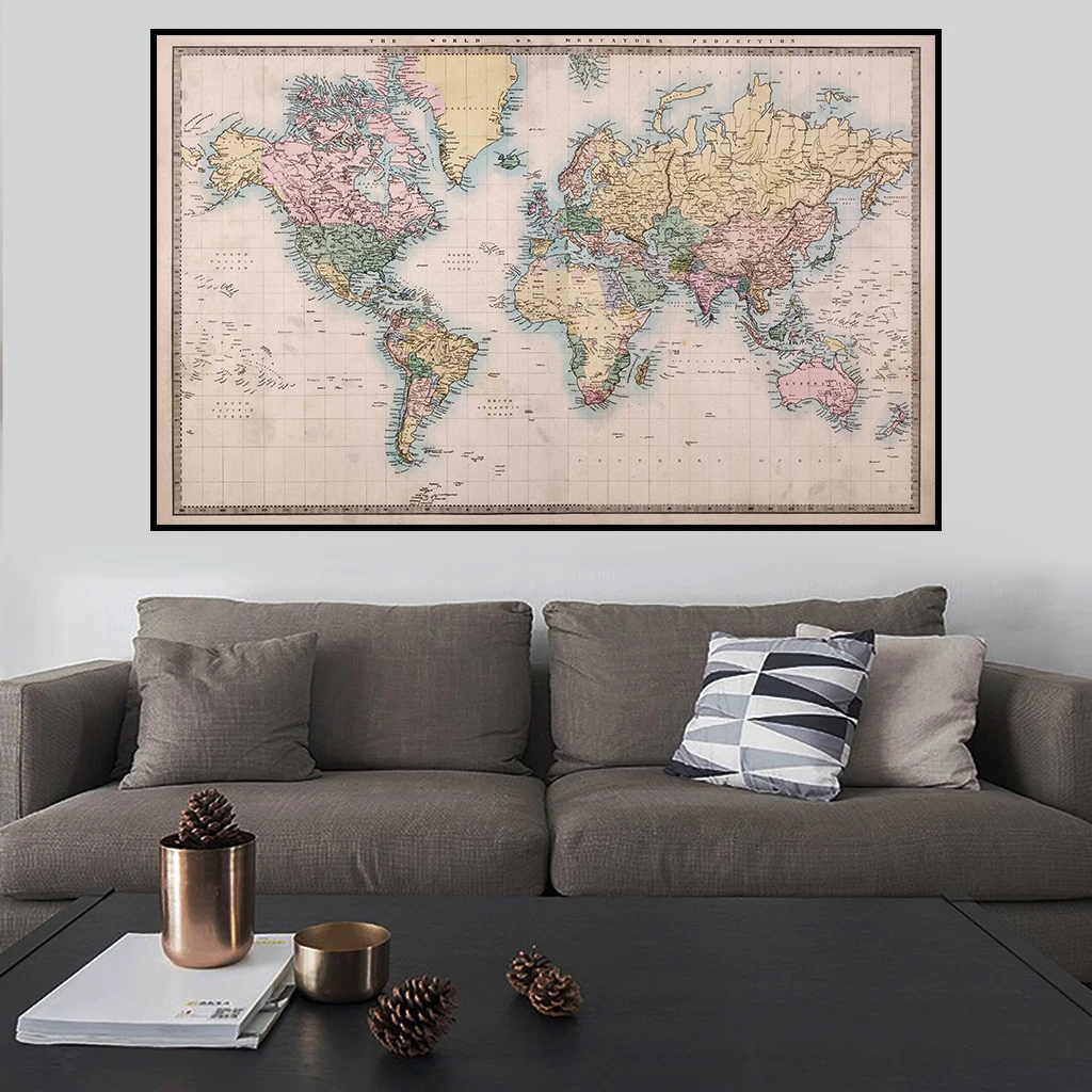 Картина на холсте, винтажная карта мира, плакат, Настенный декор, плакат и принты, украшение для гостиной, Настенная картина, холст
