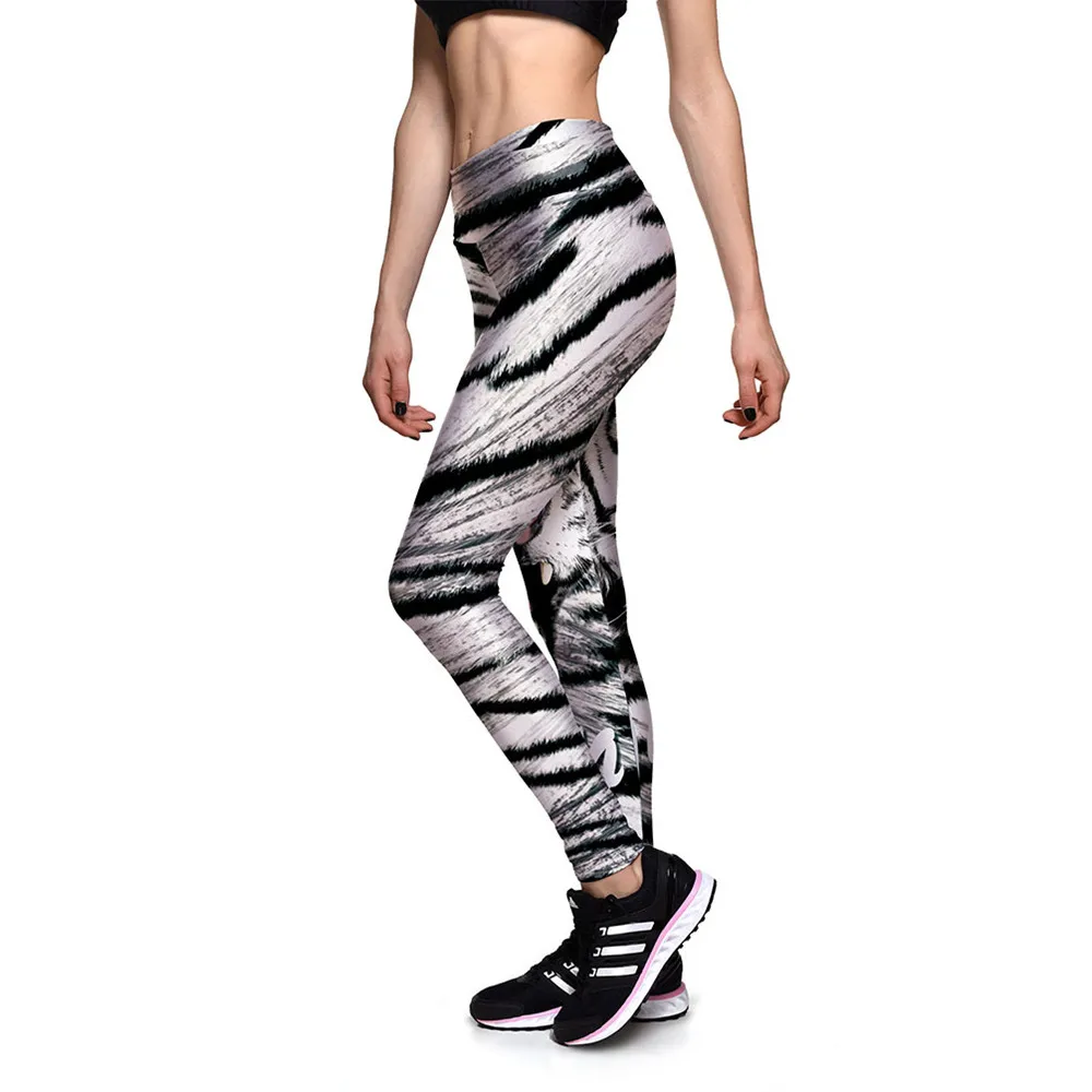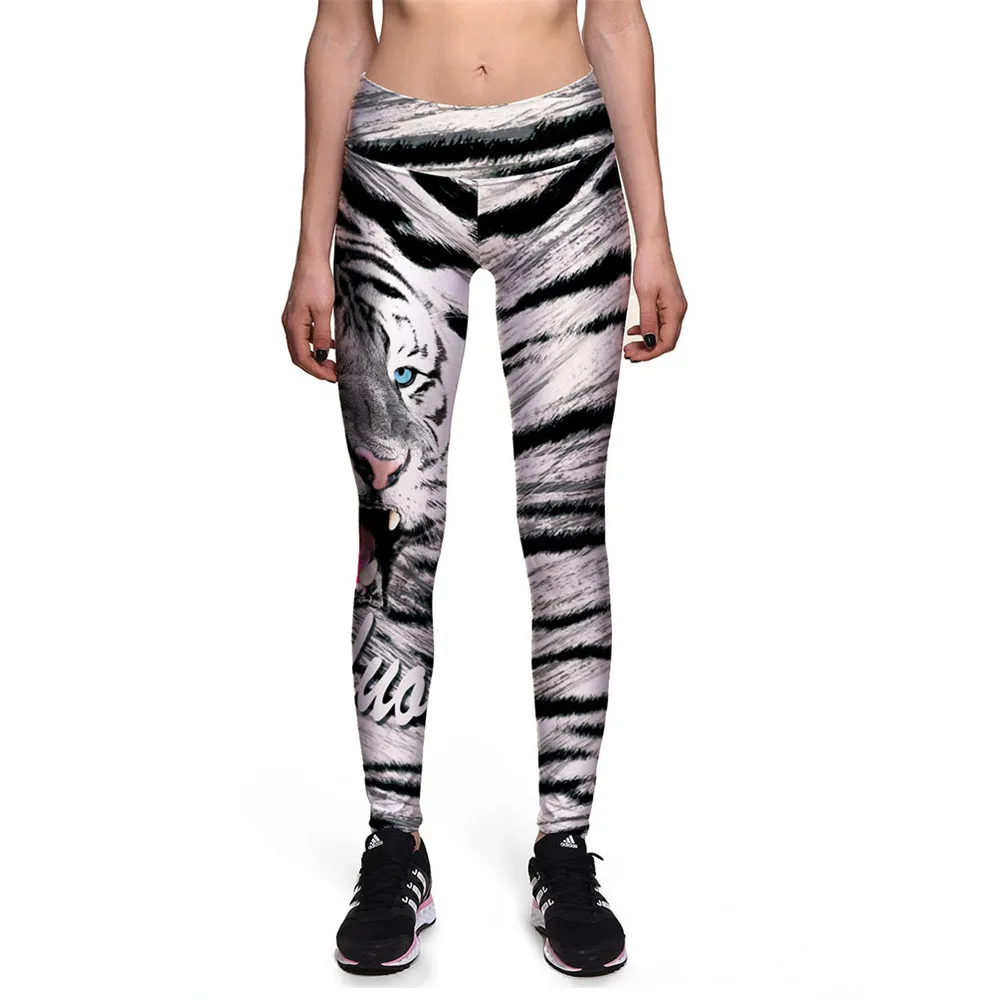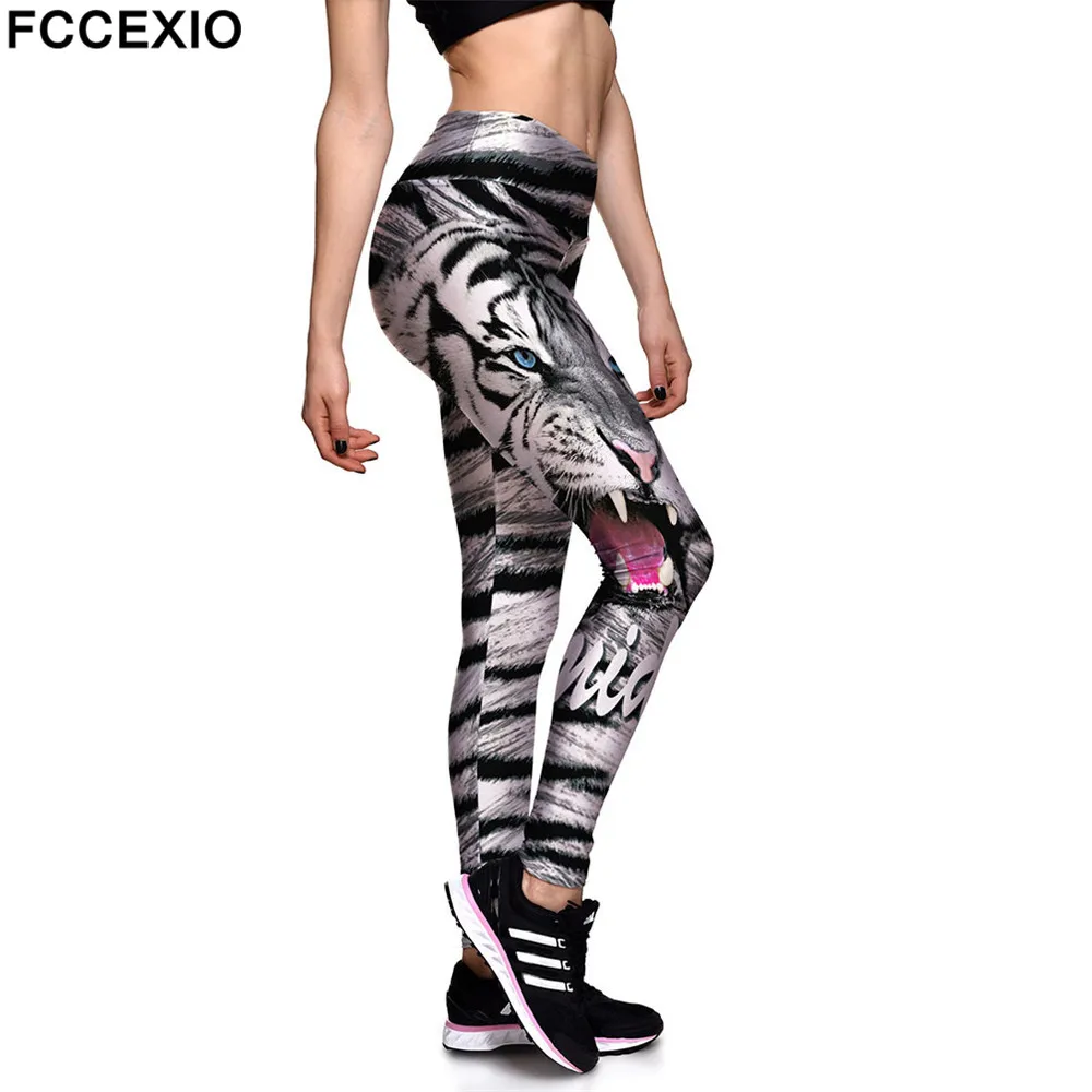 Леггинсы FCCEXIO женские с высокой талией, пикантные эластичные штаны с 3D-принтом белого тигра, с эффектом пуш-ап, летние штаны для фитнеса