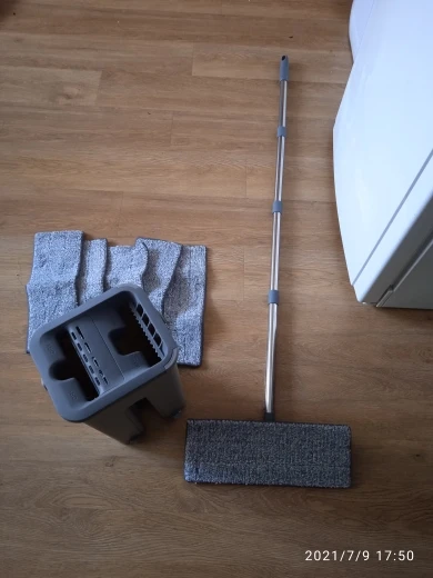 Выиграл в разделе Халява. Продавцу выражаю благодарность за значительную порядочность. С доставкой также не было проблем - упаковку даже промаркировали как хрупкий товар. Недавно заказывал похожее ведро для мамы от другого магазина, отличия разве что в цвете, так что есть с чем сравнить. Комплект: ведро, швабра, 4 тряпки. В другом магазине были запасные затычки, тут нет. Вопросы к прочности швабры и там и там одинаковые, но время покажет. Крышка моего ведра, к сожалению, с лёгким браком - плохо зарывается, поэтому при отжиме приходится придерживать. Отсек для сухого отжима справляется хорошо, а вот второй как будто хуже, чем у аналогичного ведра. Сливается легко с помощью затычек, думаю швабра сломается раньше, чем понадобится запаска. Тряпка крепится к швабре на липучки и крючки по бокам, пока ни разу не слетела. В итоге, пользоваться швабрами такого типа очень удобно, особенно за разумную цену. Следите за распродажами