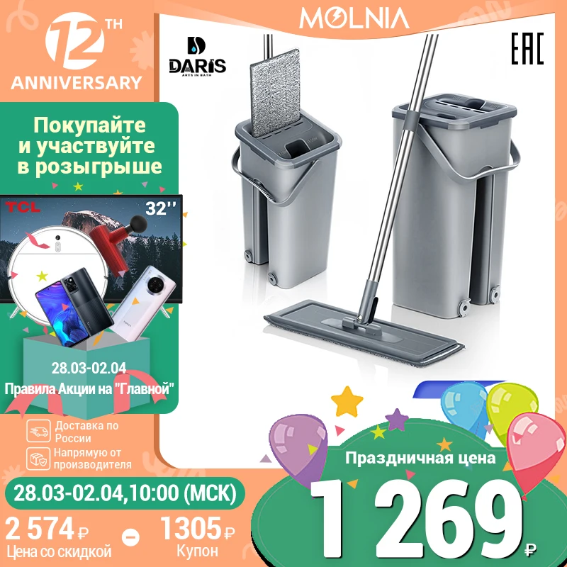 SDARISB швабра с ведром отжимом для мытья пола дома без рук ведро со шваброй отжим для дома и уюта MOLNIA