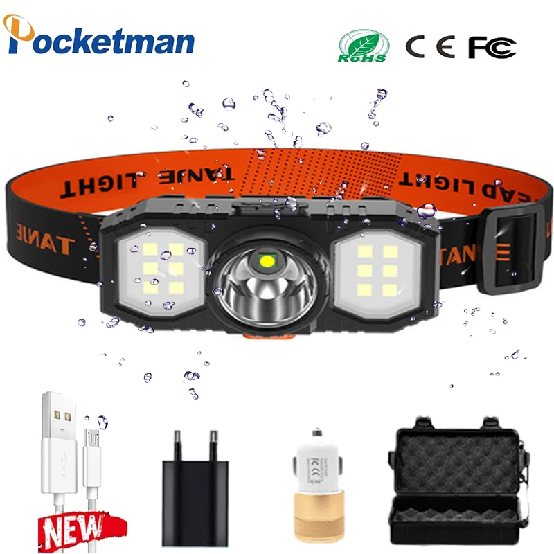 60000 люмен портативный мини XPE + COB светодиодный налобный фонарь USB перезаряжаемый светодиодный фонарь для кемпинга, налобный фонарь для рыбалки, тактический фонарь
